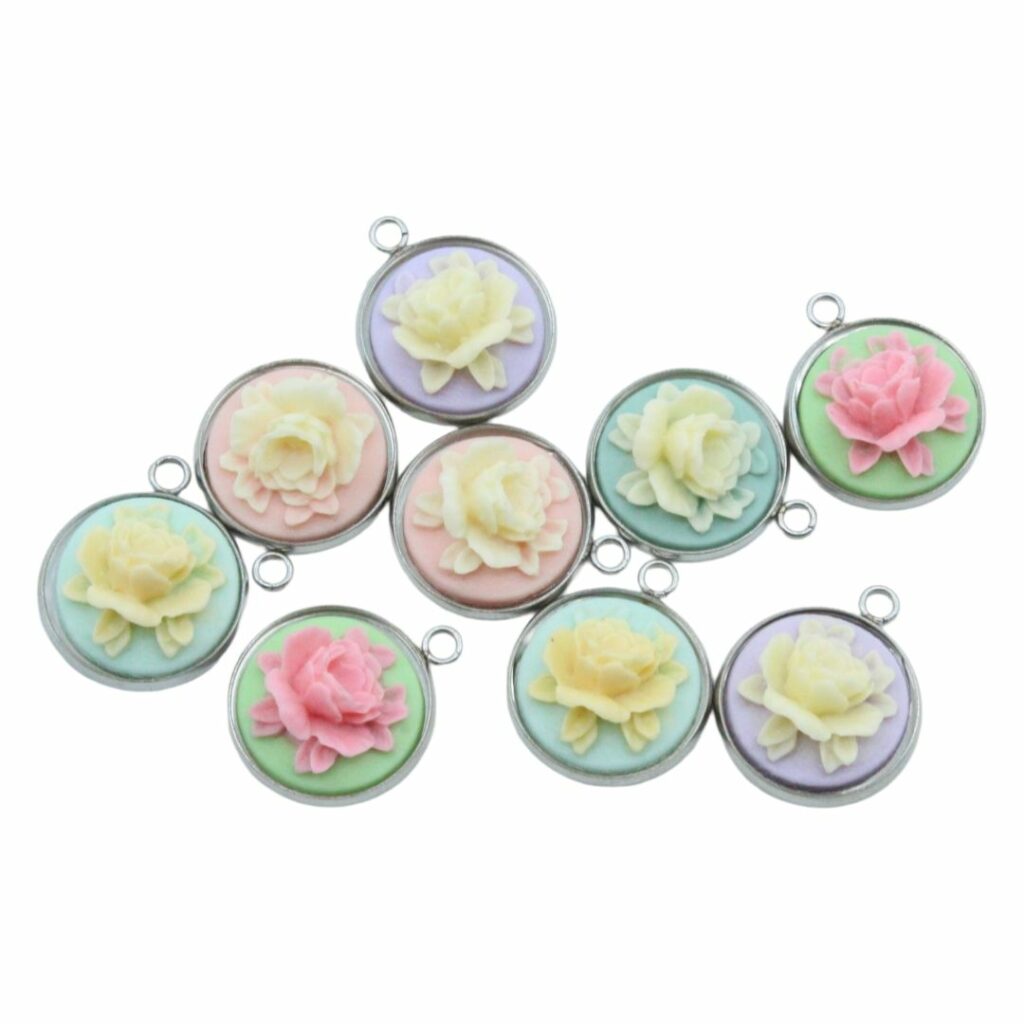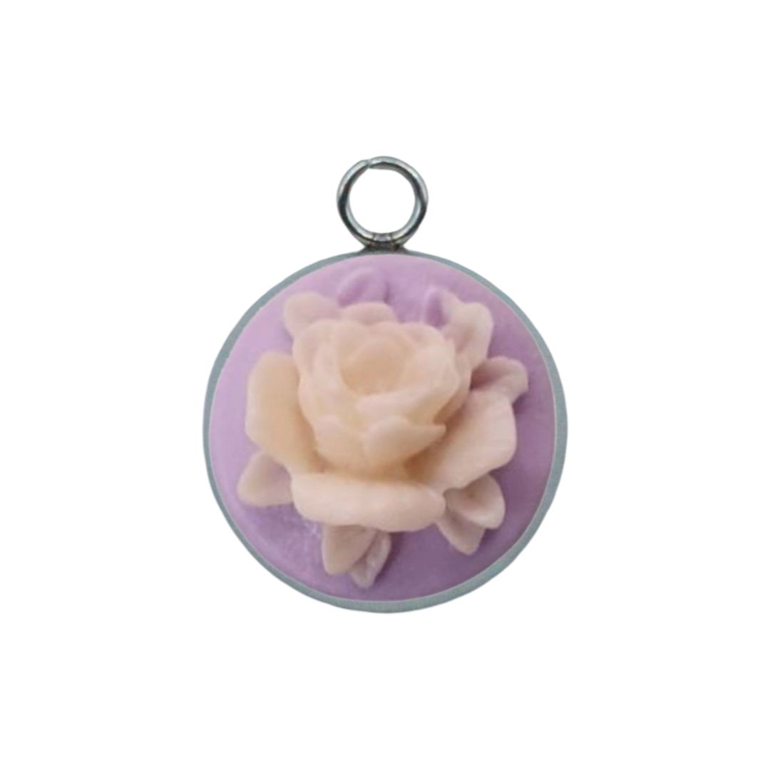 Cameo Charm – 18mm – Stainless Steel – Mauve / Cream.