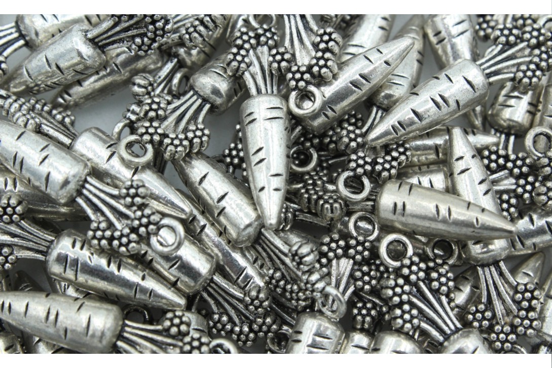 Carrot – 30 x 10mm – Antique Silver. Quality product. Metal Charm. Nickel Free. Plated.