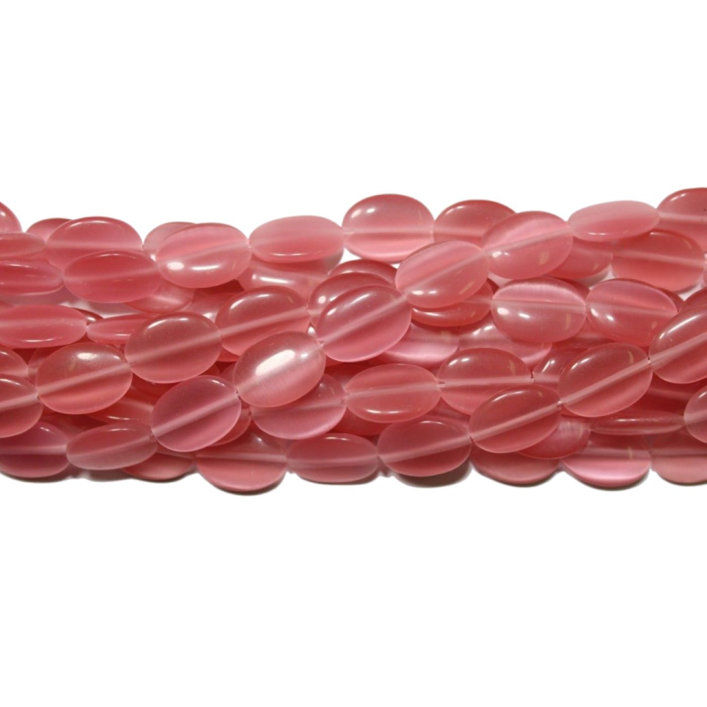 Cats Eye – 14mm – Oval – Pink – 38cm Strand. 14 x 10mm bead size. Flat oval glass bead. Please contact us to purchase individual pieces.