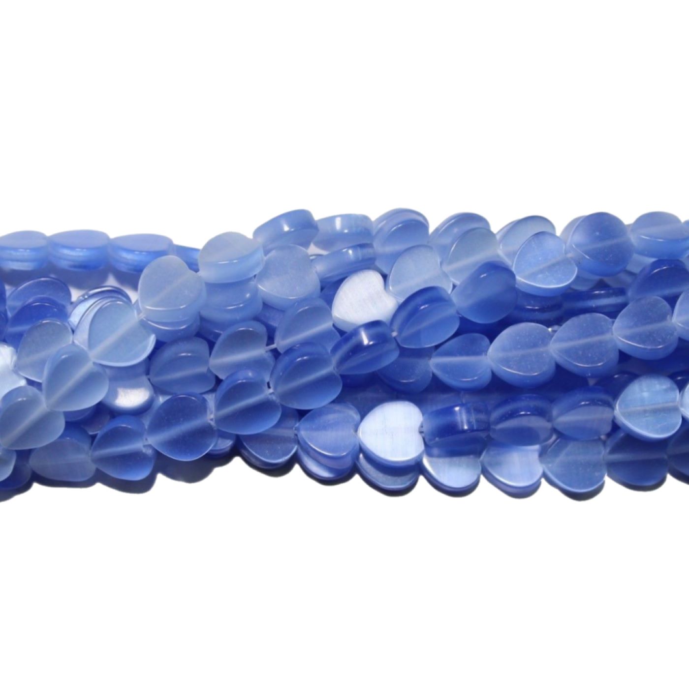 Cats Eye – 8mm – Flat Heart – Blue – 32cm Strand