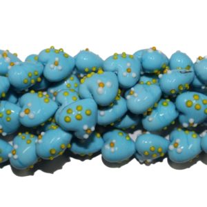 Cats Eye – 8mm – Flat Heart – Blue – 32cm Strand. 8mm bead size. Flat heart glass bead. Please contact us to purchase individual pieces.