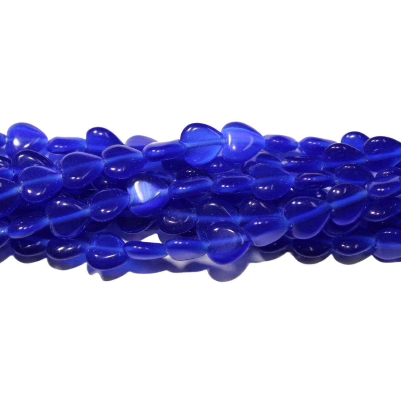 Cats Eye – 8mm – Puffy Heart – Blue – 36cm Strand. 8mm bead size. Puffy heart glass bead. Please contact us to purchase individual pieces.