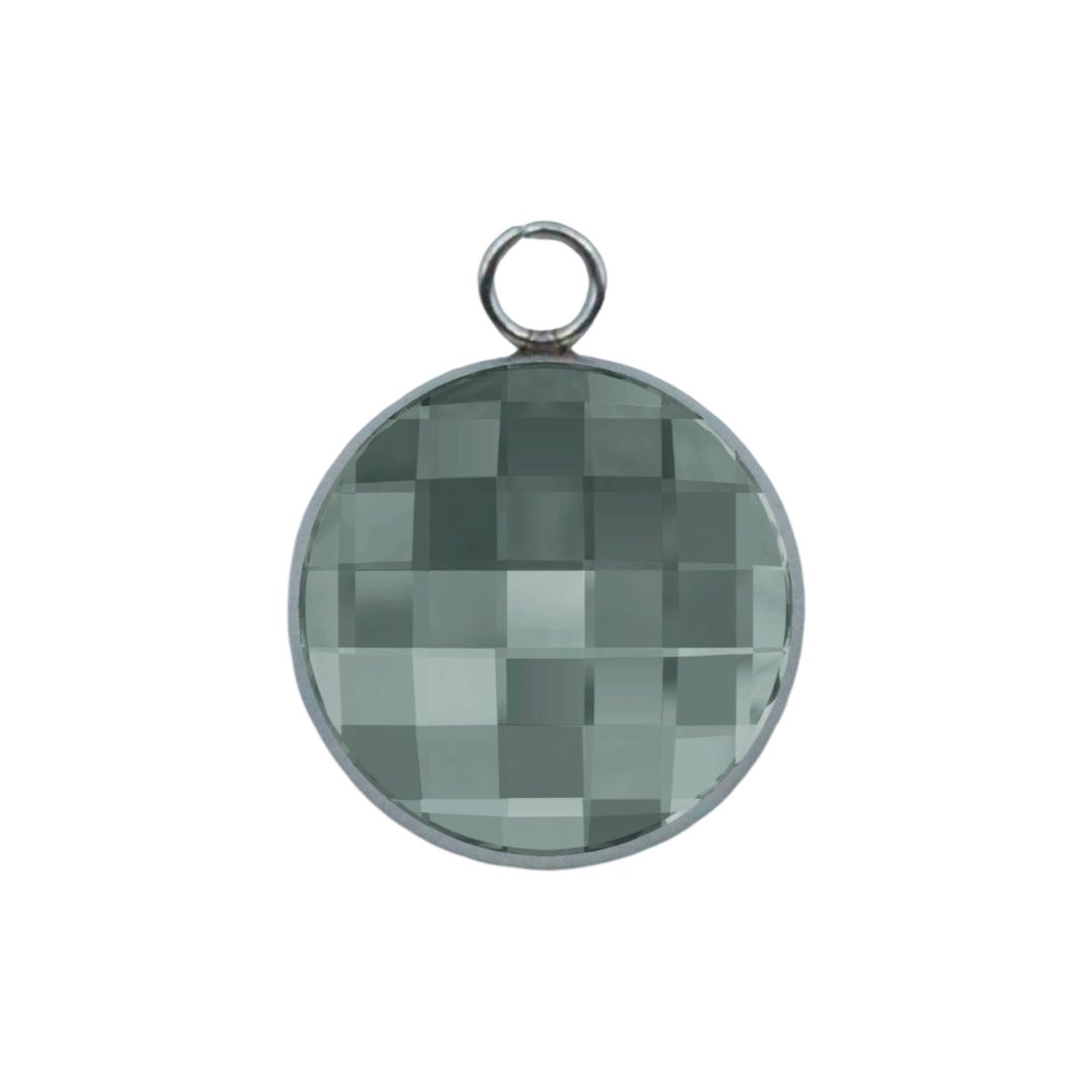 Chessboard Circle Charm – 14mm – Stainless Steel – Black Diamond F.