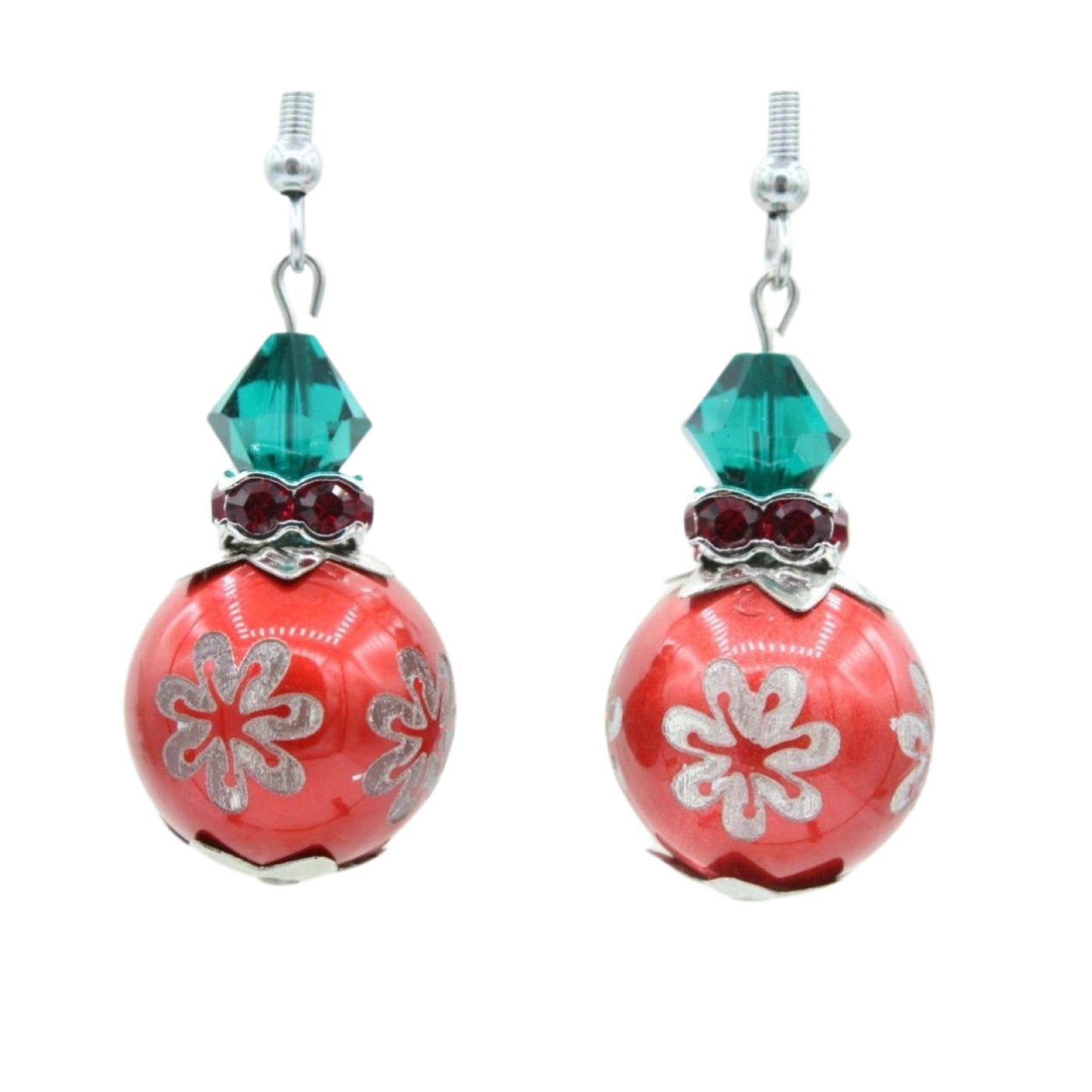 Christmas Earrings – Bauble – Red – 28mm. Plastic bead with Swarovski Crystal rondelle and bicones. 28 x 16mm length excluding ear hook. Earrings on Stainless Steel Ear Hooks. Subject to availability.