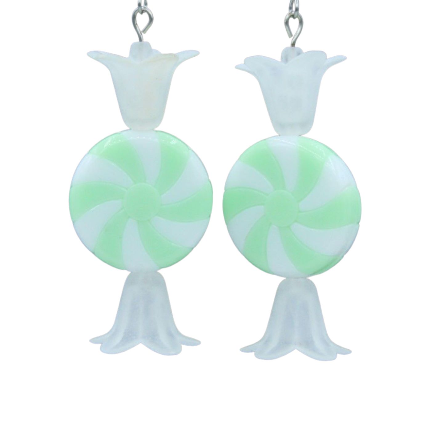 Christmas Earrings – Candy – Green – 50mm. Quality plastic beads. 50 x 23mm length excluding ear hook. Earrings on Stainless Steel Ear Hooks. Subject to availability.