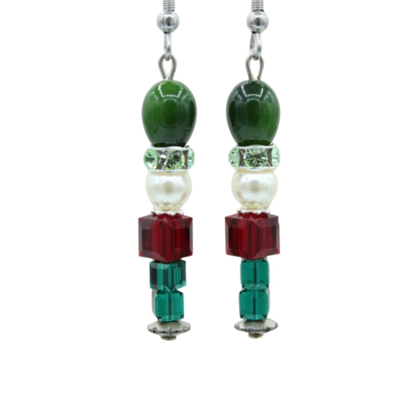 Christmas Earrings – Crystal Nutcracker – XMAS – 38mm. Swarovski Crystal beads. 38mm length excluding ear hook. Earrings on Stainless Steel Ear Hooks. Subject to availability.