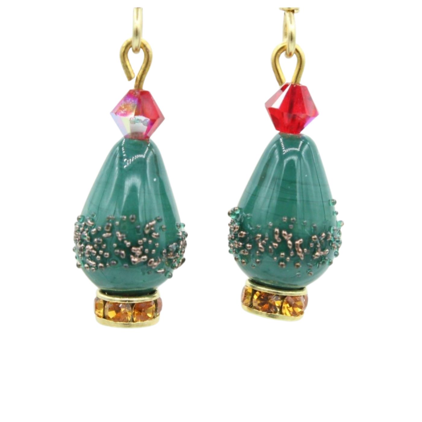 Christmas Earrings – Czech / Crystal Tree – Green – 20mm. Quality Hand made Czech glass beads with Swarovski Crystal rondelles and beads. 20 x 10mm length excluding ear hook. Earrings on Stainless Steel Ear Hooks. Subject to availability.