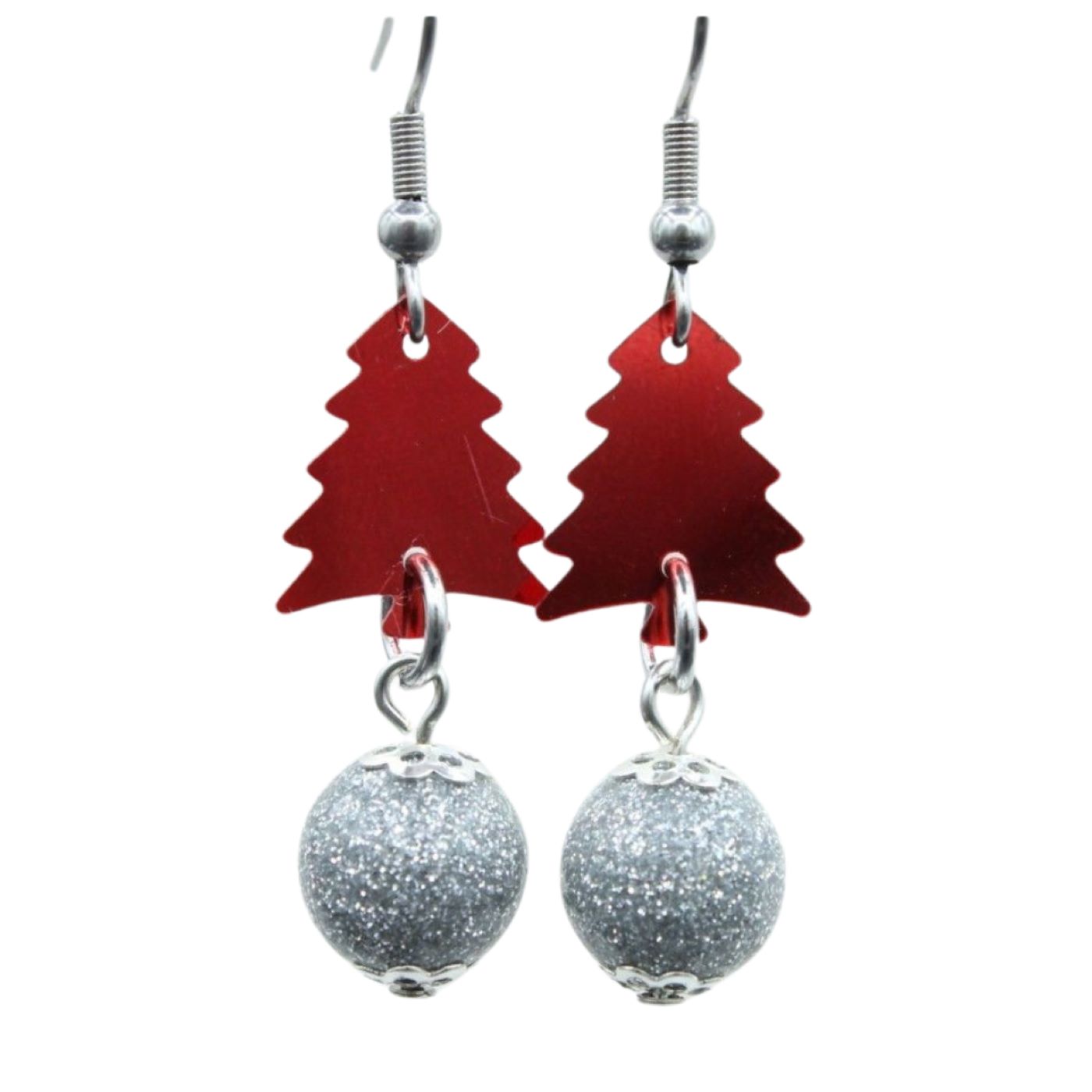Christmas Earrings – Sequin Tree – Red / Silver – 30mm. Sequin & Quality plastic beads. 30 x 12mm length excluding ear hook. Earrings on Stainless Steel Ear Hooks. Subject to availability.
