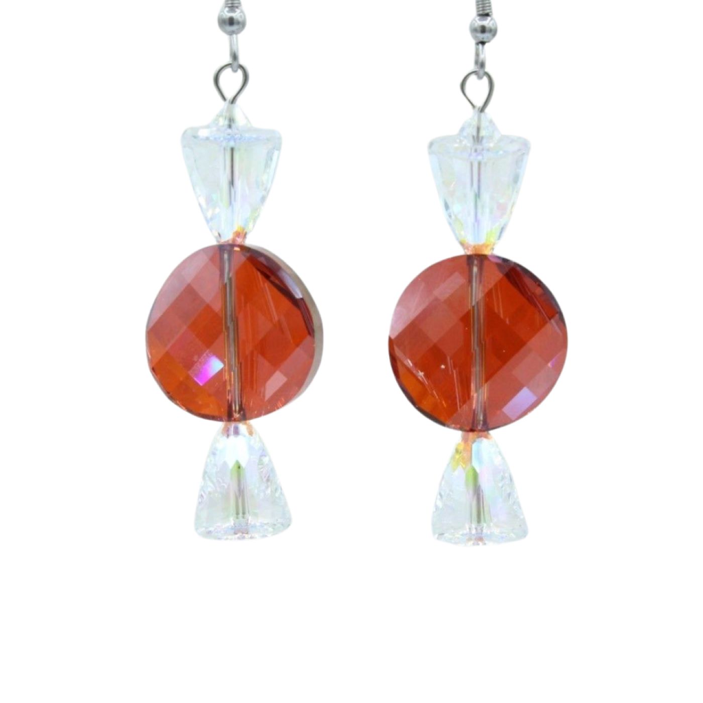 Christmas Earrings – Twist Candy – Red Magma – 43mm. Swarovski Crystal Twist & Dome beads. 43 x 18mm length excluding ear hook. Earrings on Stainless Steel Ear Hooks. Subject to availability.