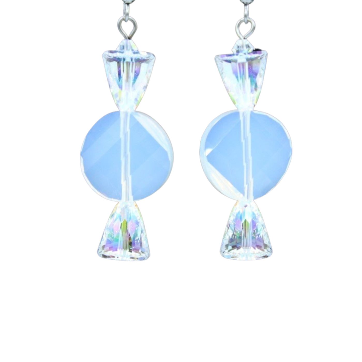 Christmas Earrings – Twist Candy – White Opal – 43mm. Swarovski Crystal Twist & Dome beads. 43 x 18mm length excluding ear hook. Earrings on Stainless Steel Ear Hooks. Subject to availability.