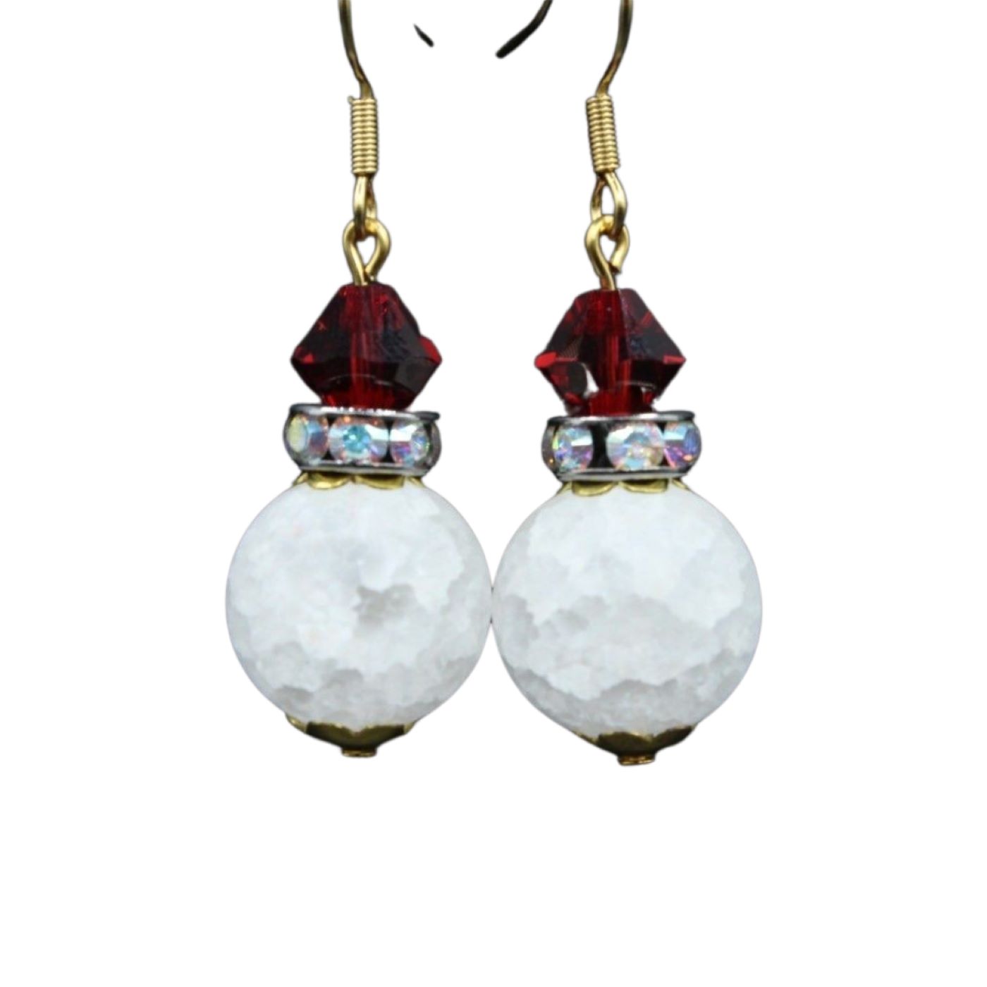 Christmas Snow Bauble. Components include 14mm Crack Frost glass bead, Swarovski Bicone & Rondelle. 25mm drop length excluding ear hook. Earrings on Stainless Steel Ear Hooks.