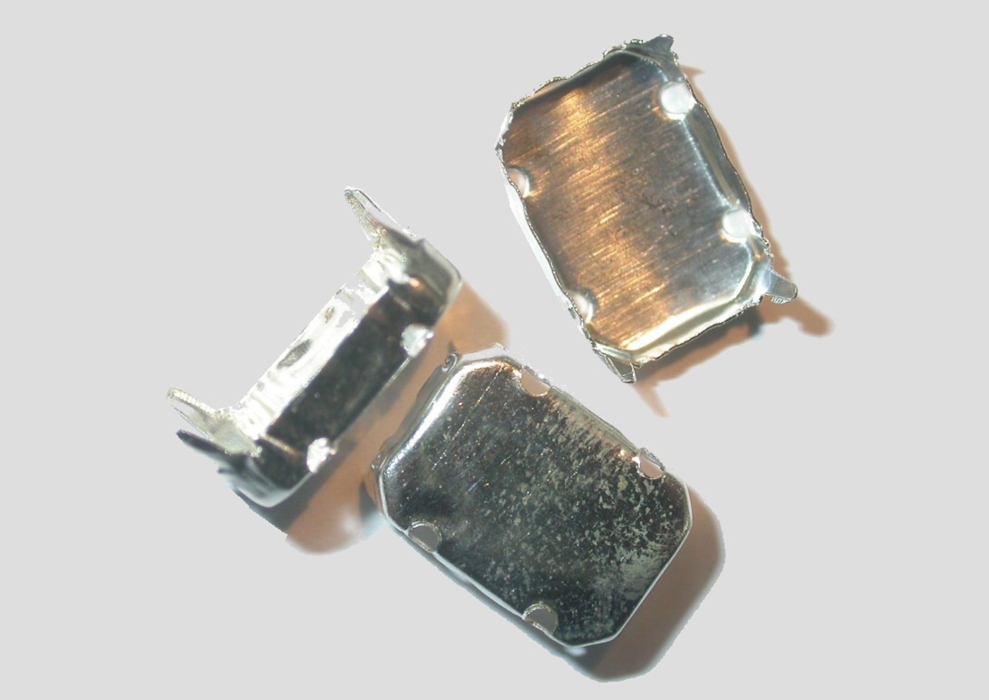 Claw – 10 x 14mm – Baguette – Silver. Silver plated. 4 Holes at back of claw. Ideal for Swarovski Crystal jewellery diamontes. Please contact us or see Swarovski Crystal category to view available colours.
