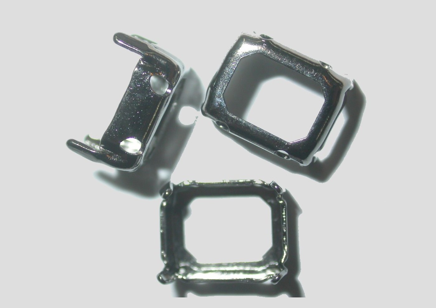 Claw – 8 x 6mm – Baguette – Gun Metal. Quality Product. Gun Metal plated. 4 Holes at back of claw. Ideal for Swarovski Crystal jewellery diamontes. Please contact us or see Swarovski Crystal category to view available colours.