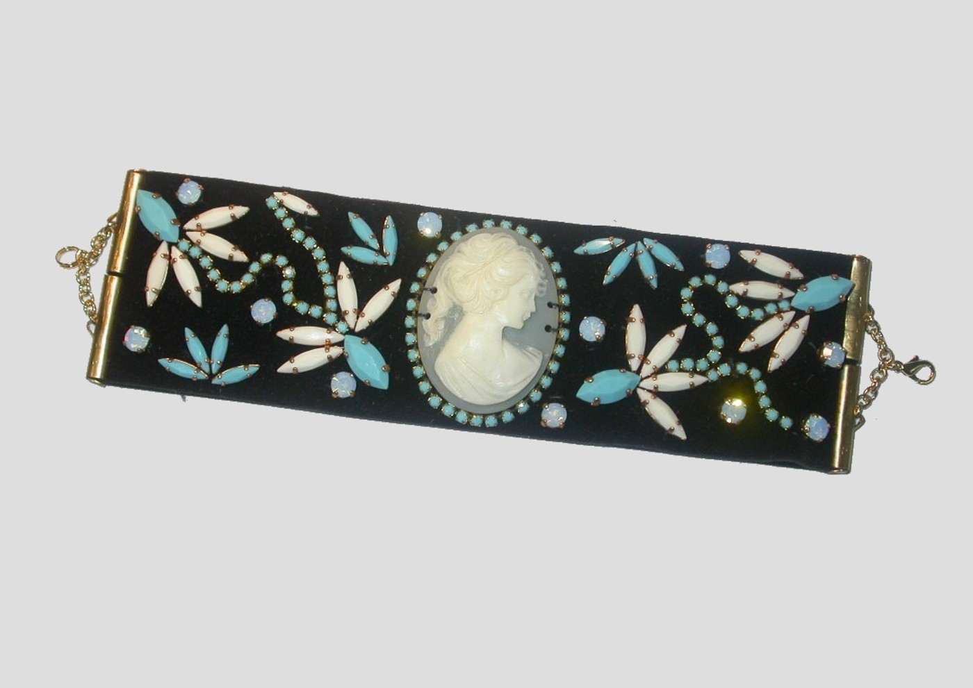 Cleopatra Crystal Bracelet. Bracelet has a collection of quality Swarovski Crystal jewellery diamontes & german made claws. Quality resin cameo. Utilising only Swarovski crystals. Please contact us for more information regarding this kit. Please contact us to order other colours.