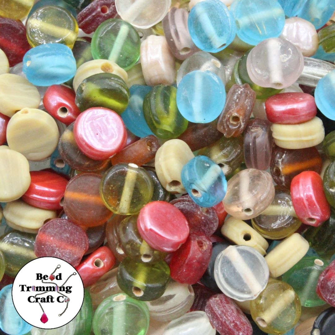 Coin Glass Bead Mix – 10mm – 100 grams.