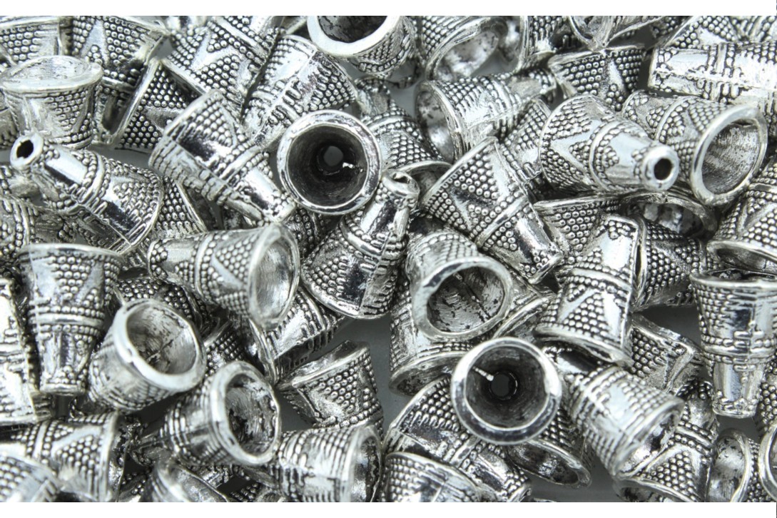 Cone Bead – 12 x 8mm – Antique Silver. Quality product. Metal Bead. Plated.