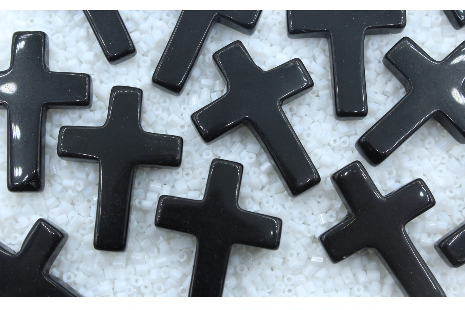 Cross – 30mm – Agate. 30 x 23mm. Top Dilled. Hole does not go completely through bead.