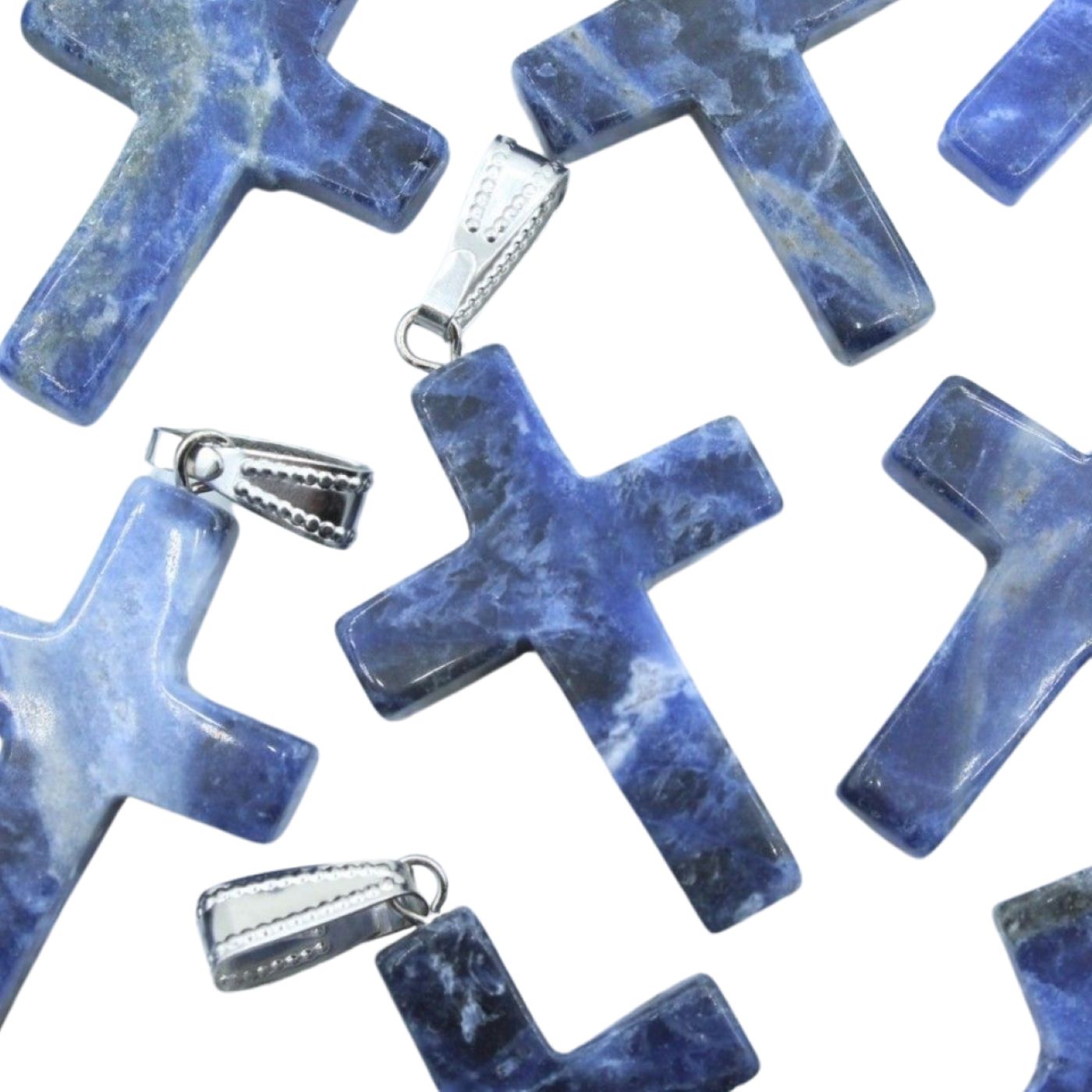 Cross – 30mm – Sodalite. 30 x 23mm. Top Dilled. Hole does not go completely through bead.