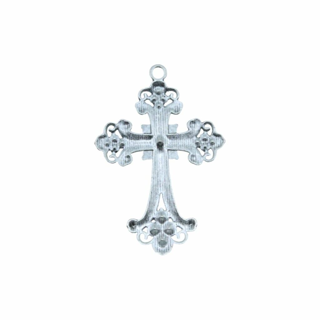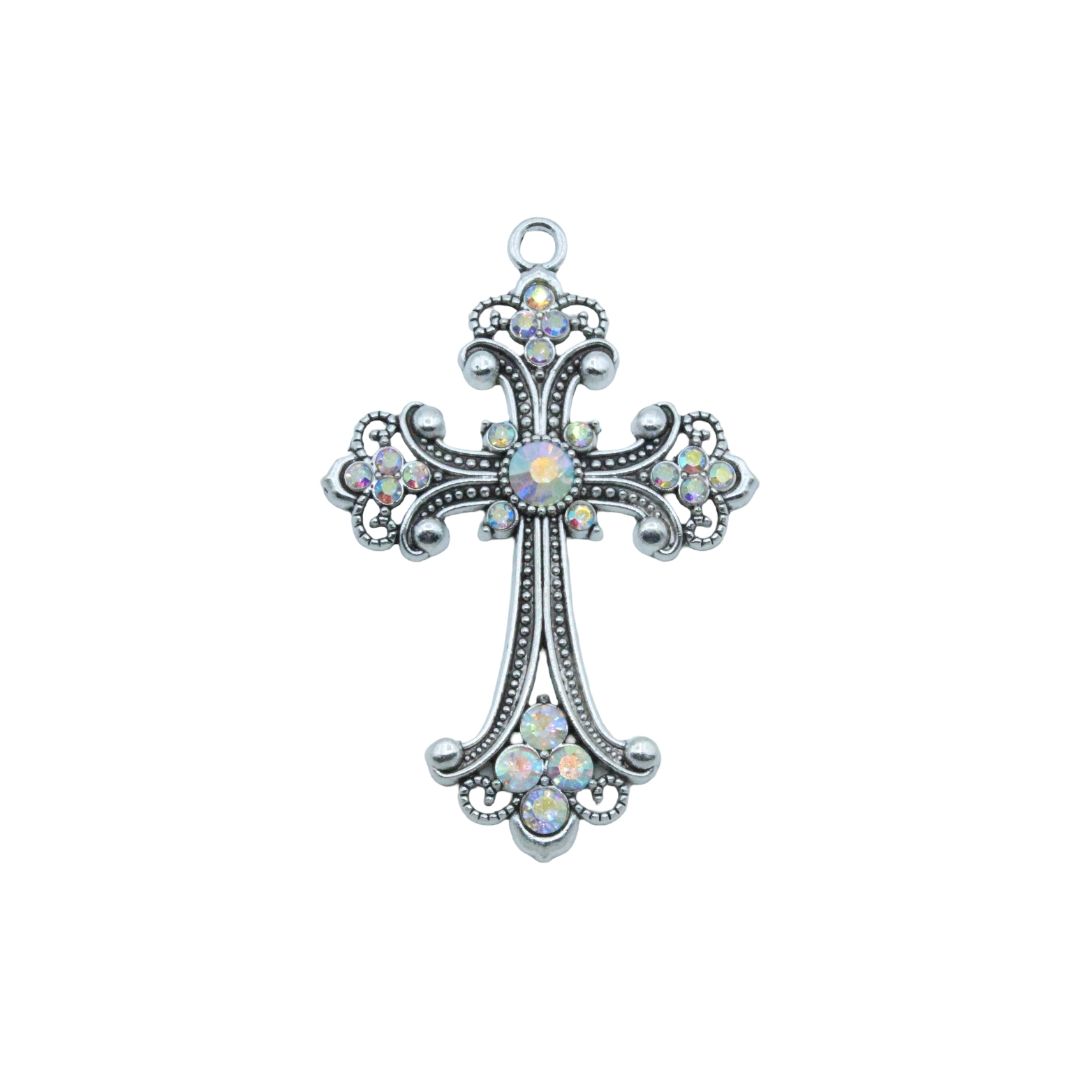 Cross / Crystal Pendant – 68mm – Antique Silver / AB.