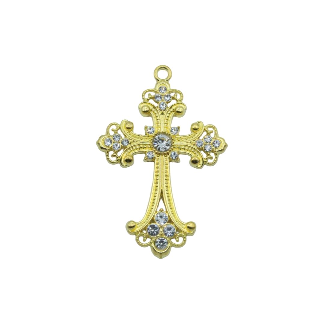 Cross / Crystal Pendant – 68mm – Gold / Crystal.