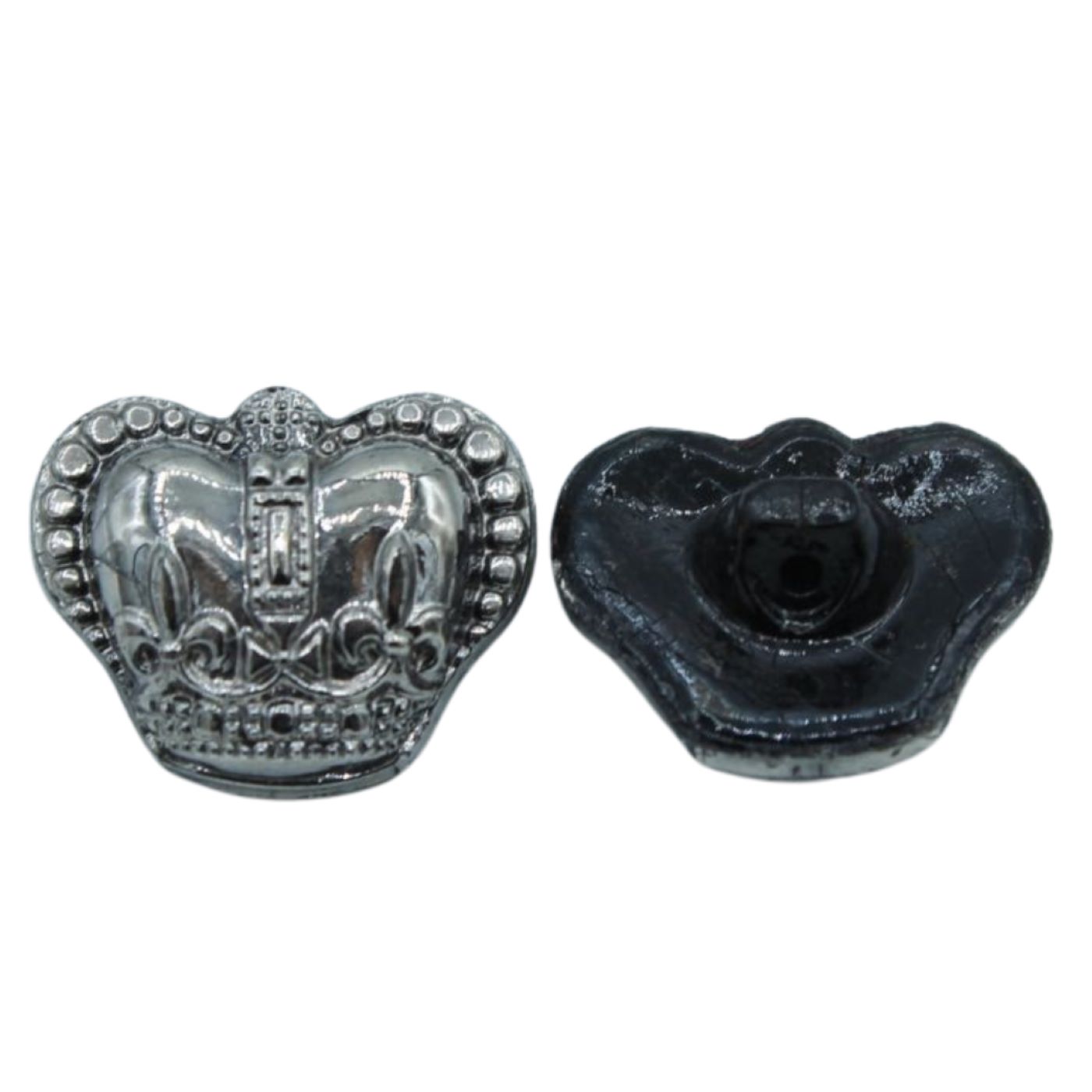 Crown Button – 16 x 13mm – Antique Silver. Plastic.
