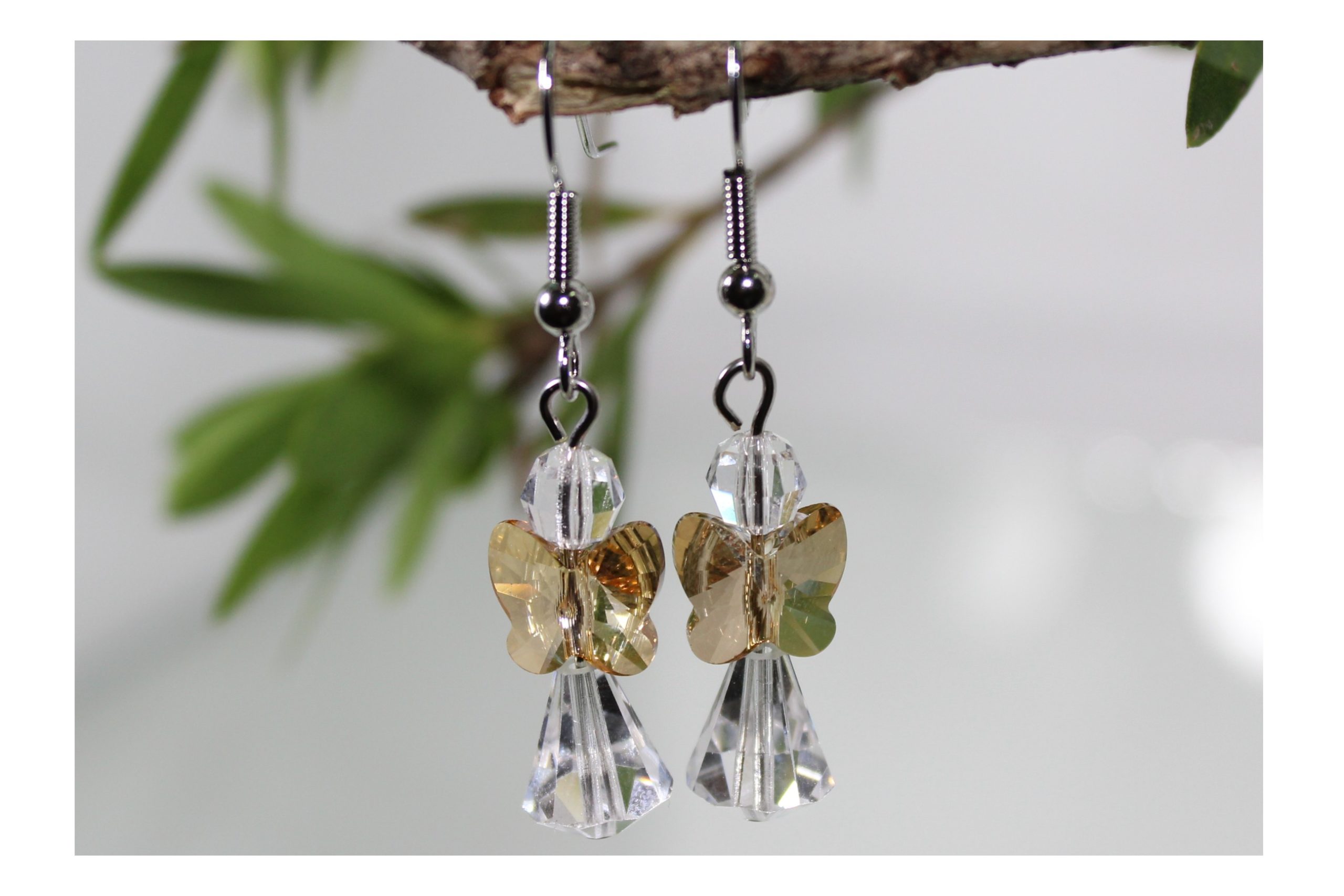 Crystal Angel / Butterfly Earring – Golden Shadow. Swarovski Crystal. Using an 10mm Crystal Butterfly. All components are available in assorted colours. Please contact us to mix colours or select colours not displayed.