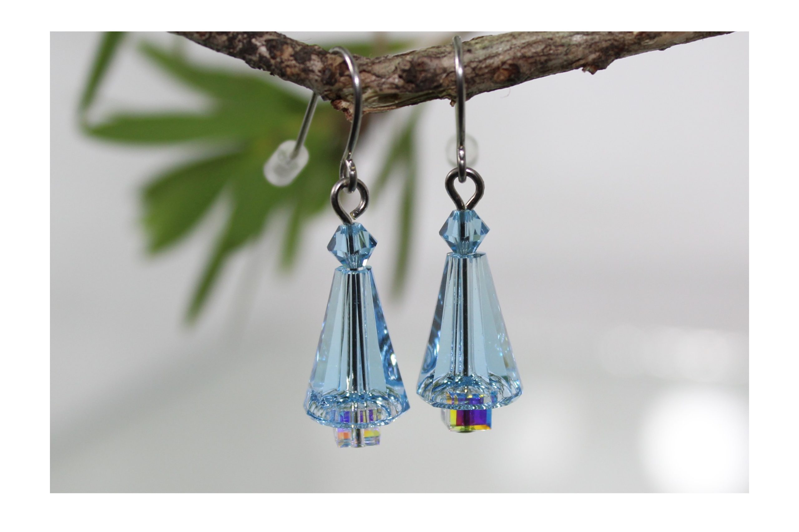 Crystal Artemis Tree Earring – Aqua. Swarovski Crystal. Using a 12mm Crystal Artemis drop. All components are available in assorted colours. Please contact us to mix colours or select colours not displayed.