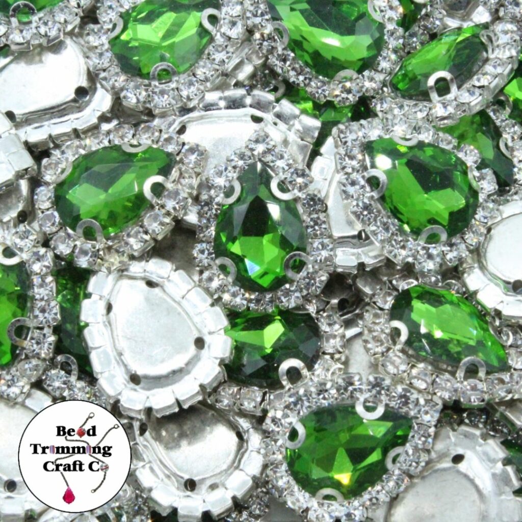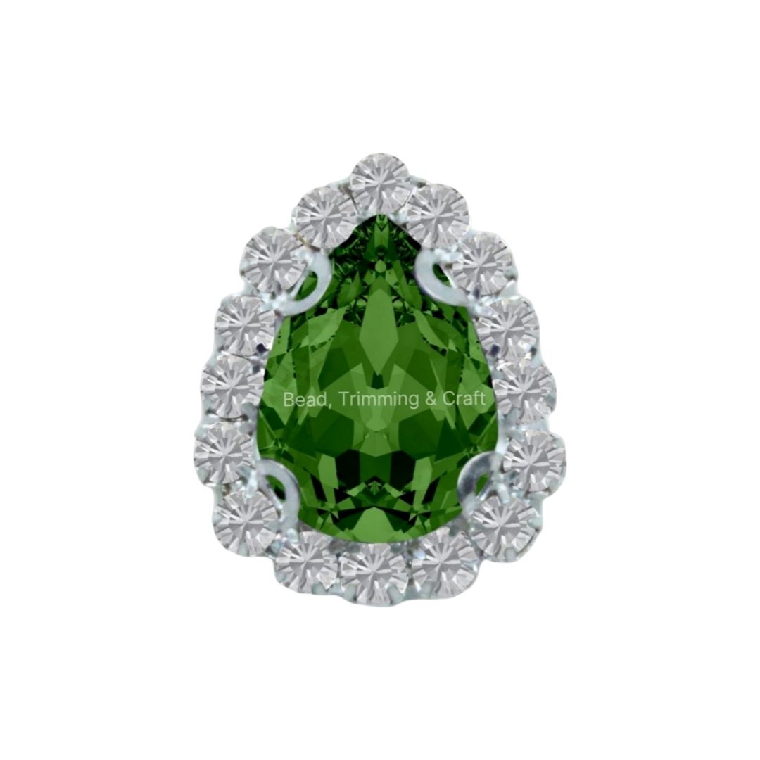 Crystal Chaton – Encrusted Drop – 19 x 15mm – Lt Emerald / Ant Silver.