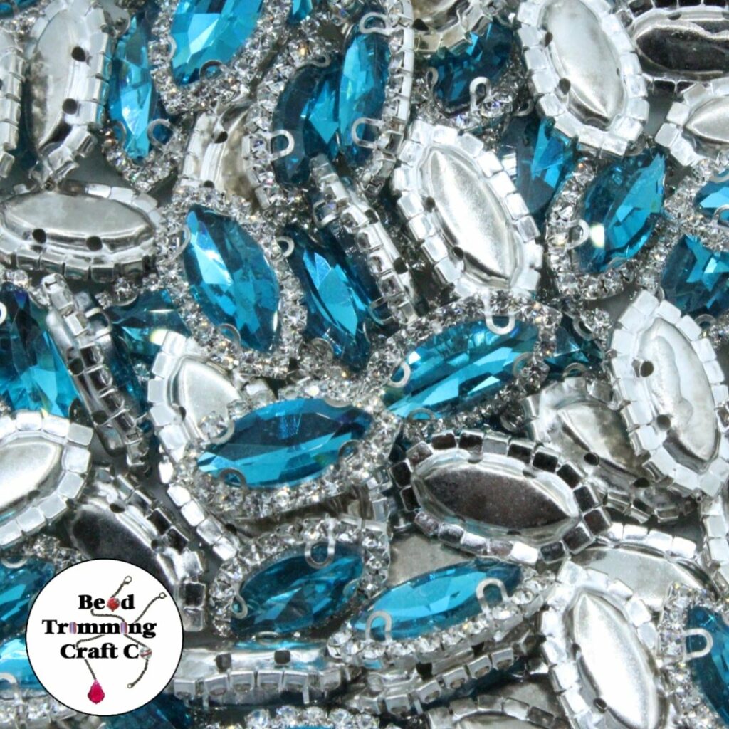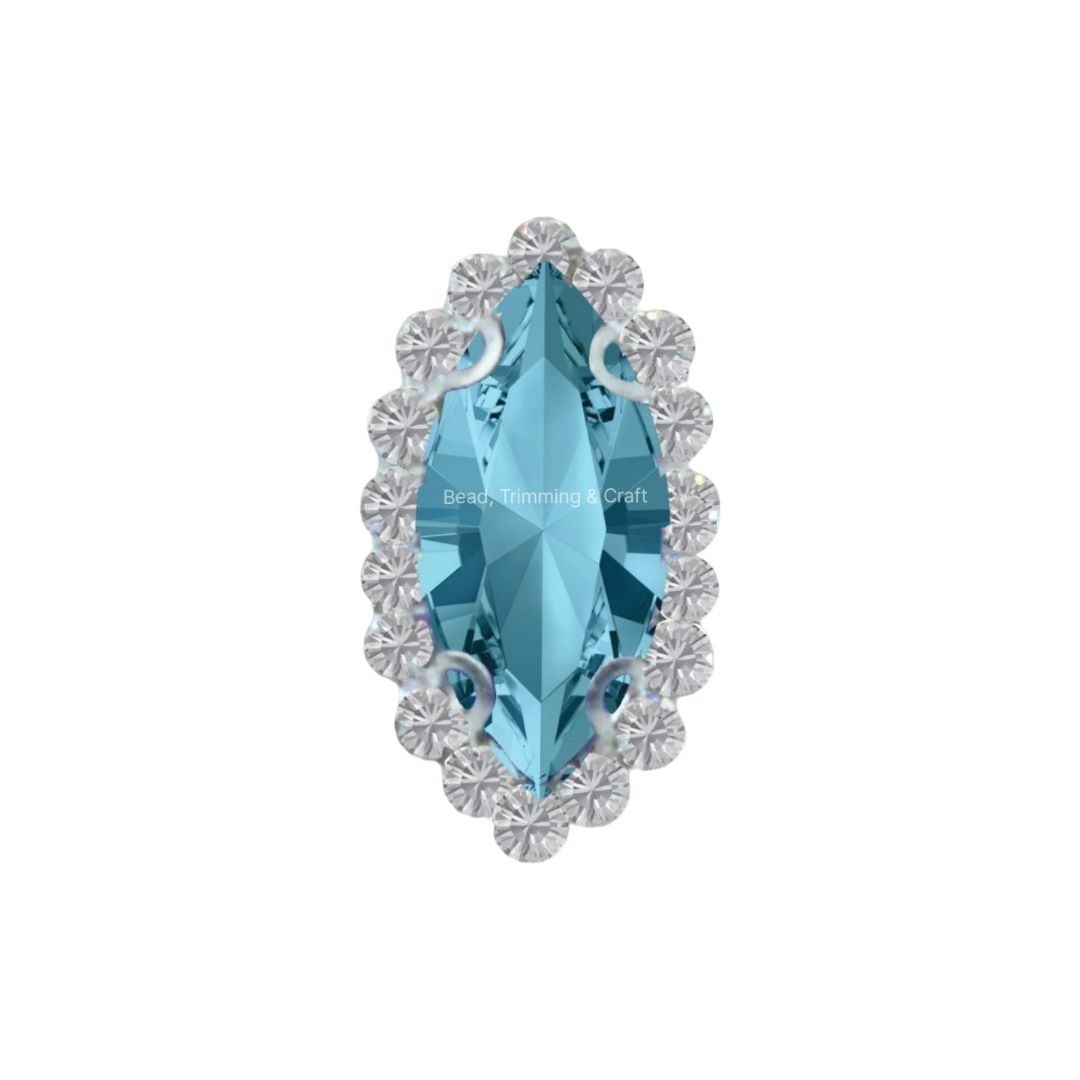 Crystal Chaton – Encrusted Navette – 20 x 11mm – Blue Zircon / Ant Silver.