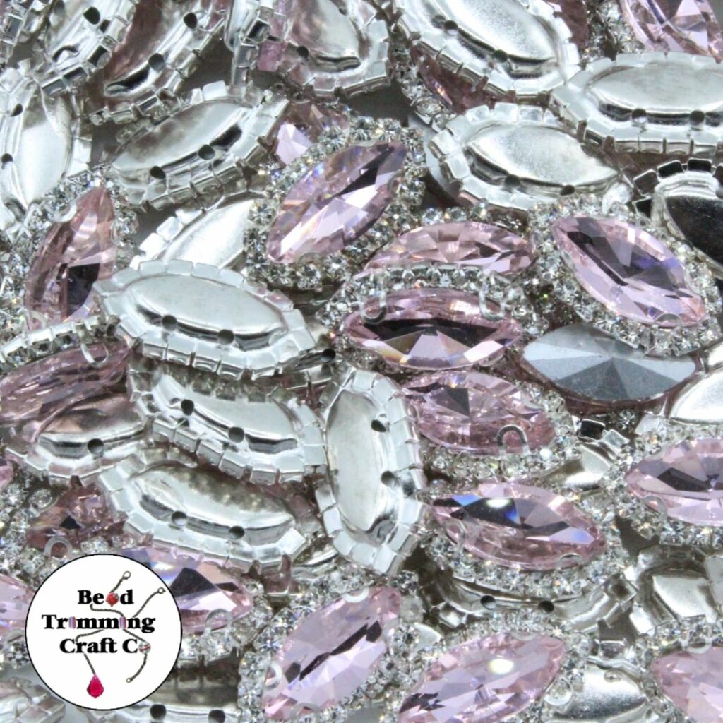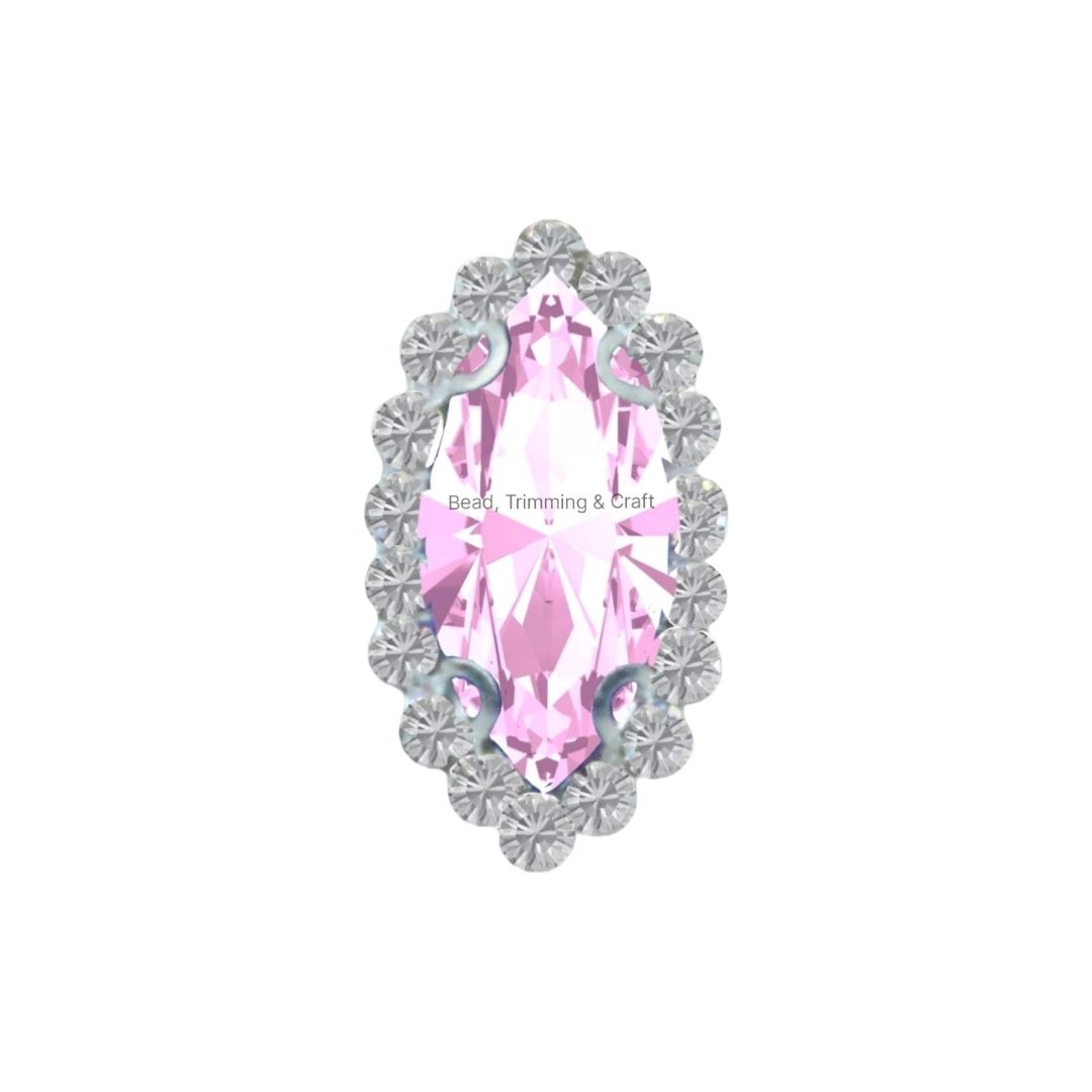 Crystal Chaton – Encrusted Navette – 20 x 11mm – Light Rose / Ant Silver.