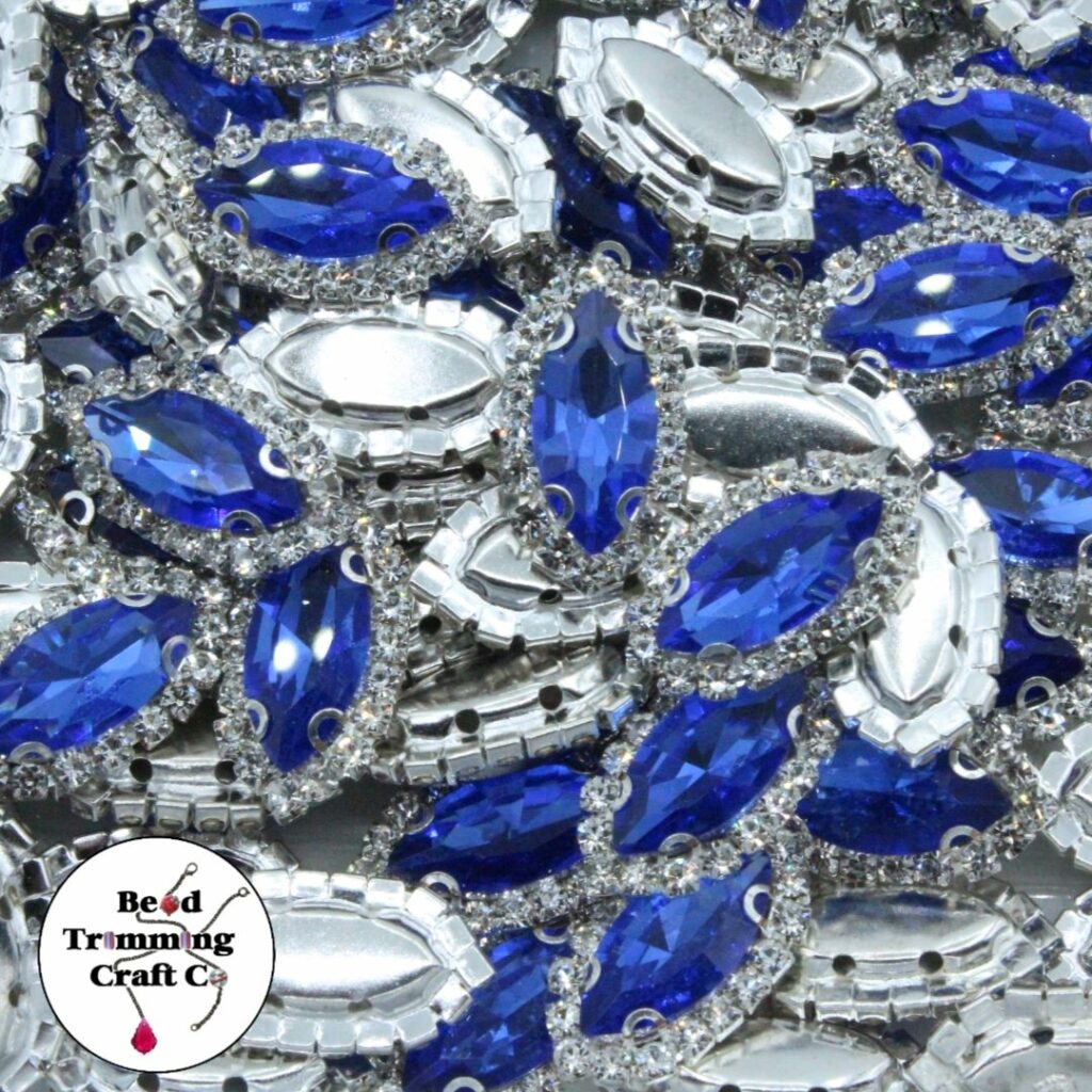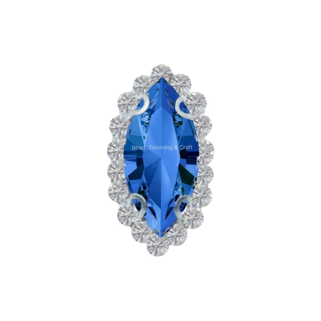 Crystal Chaton – Encrusted Navette – 20 x 11mm – Sapphire / Ant Silver.