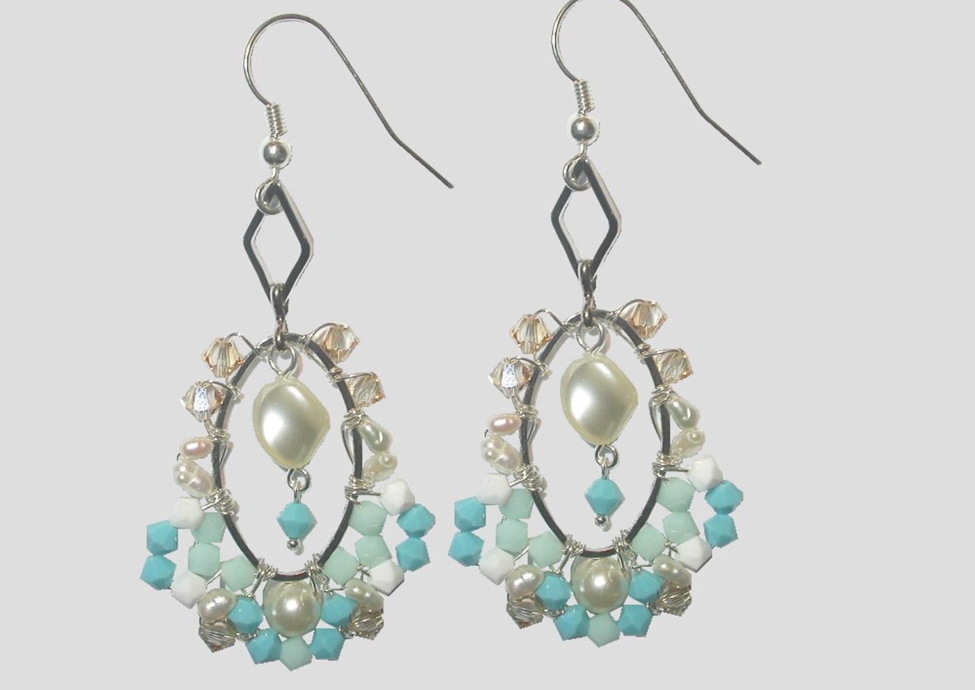 Crystal Earrings. Using a gauged wire and Swarovski crystal pearls and bicones, you will create a fantastic pair of earrings.