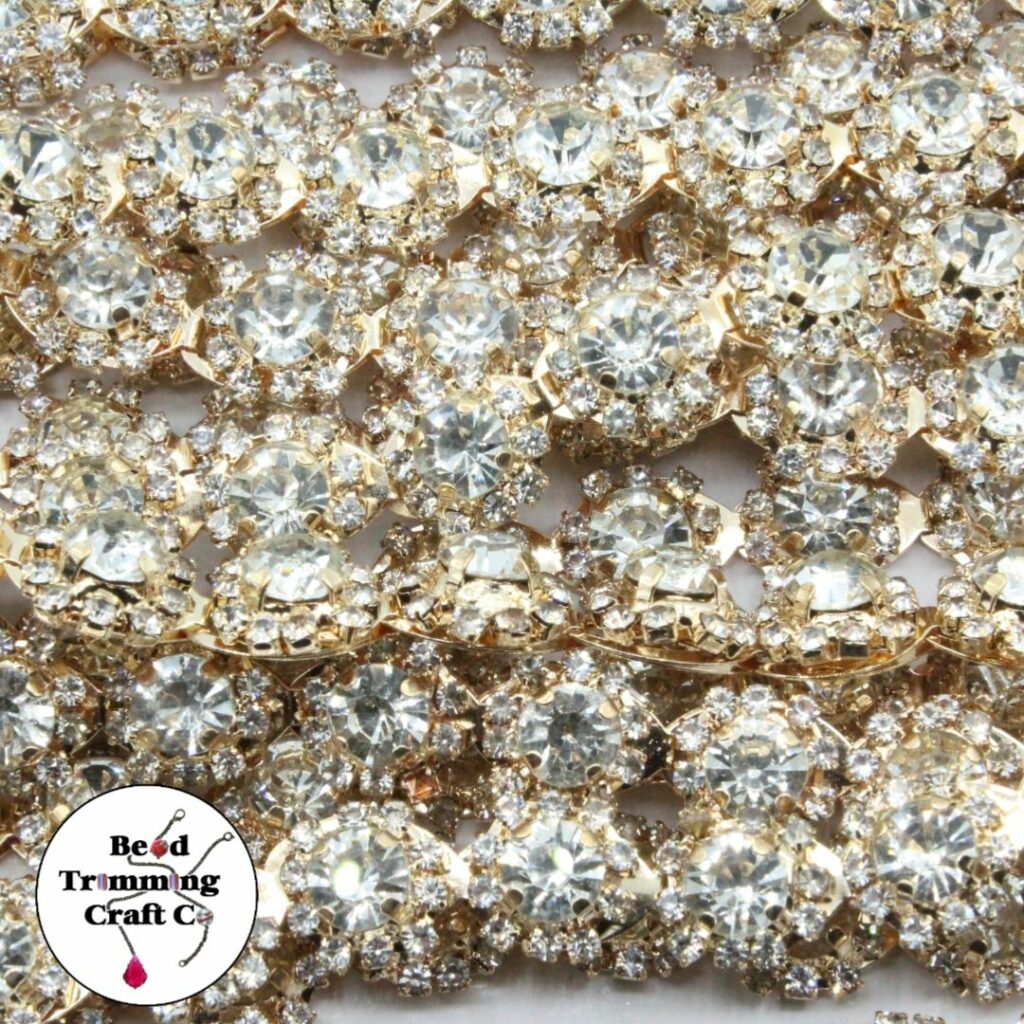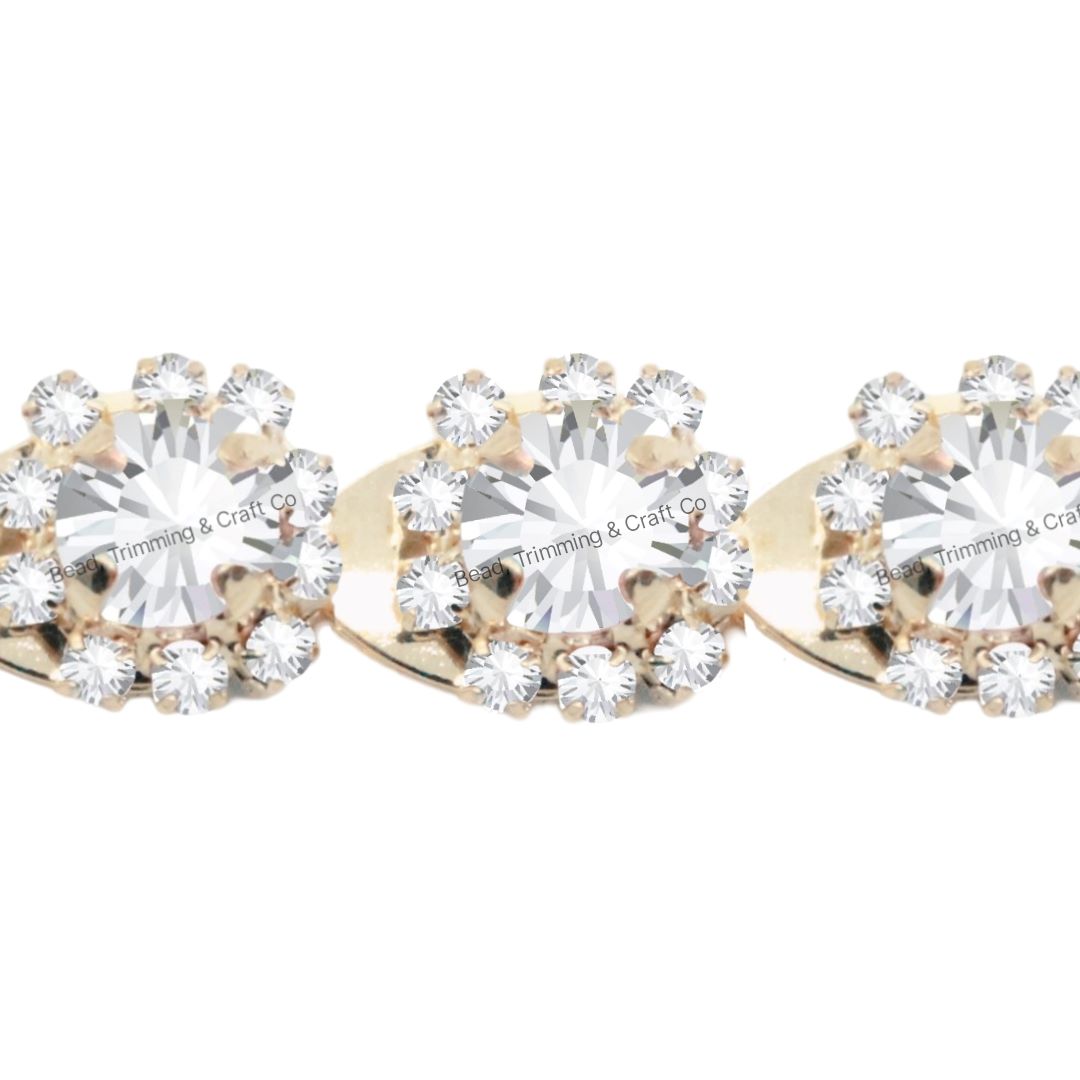 Crystal Flower Trimming – 13mm – Crystal / Rose Gold – Price per centimeter.