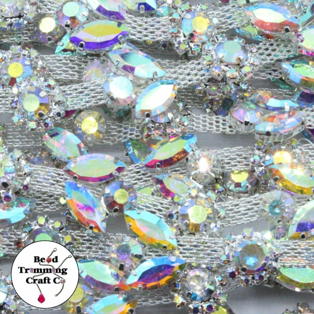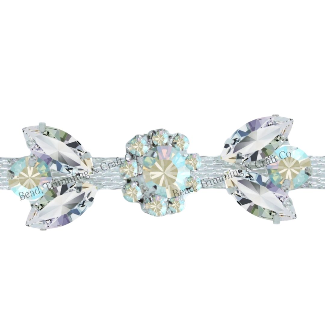 Crystal Flower Trimming – 20mm – AB / Silver – Price per centimeter.