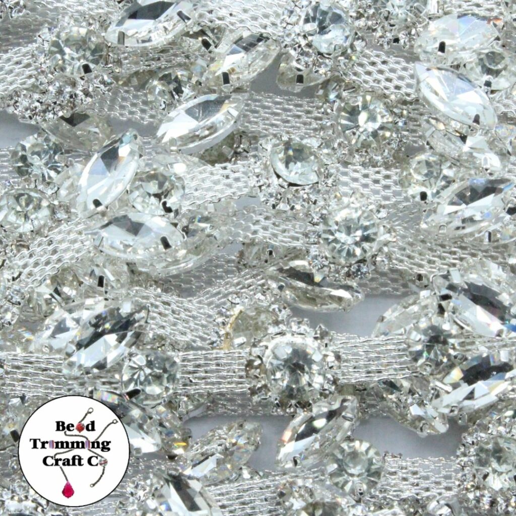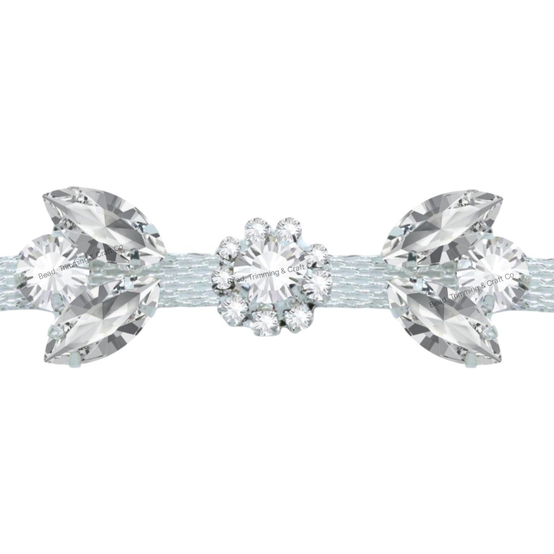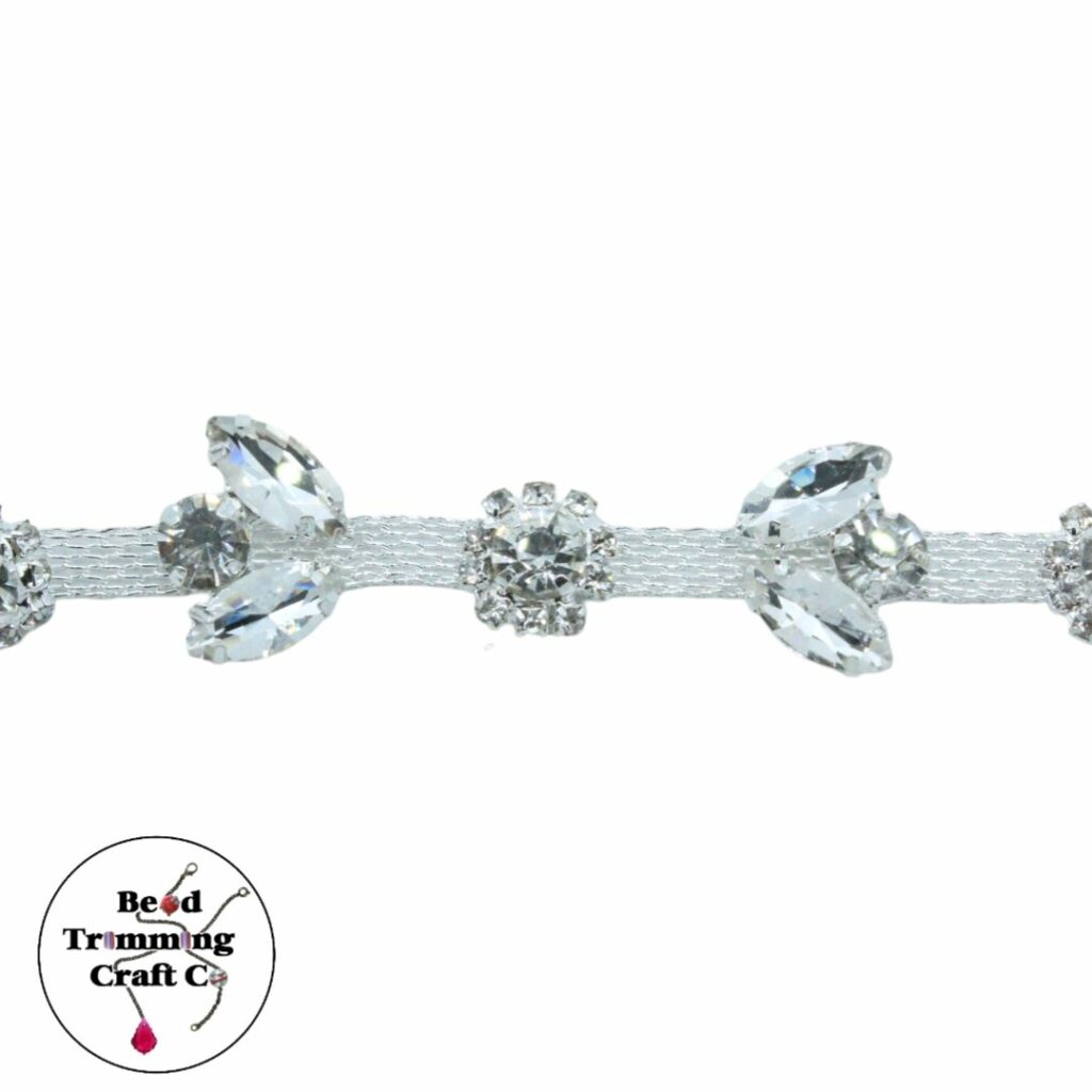 Crystal Flower Trimming – 20mm – Crystal / Silver – Price per centimeter