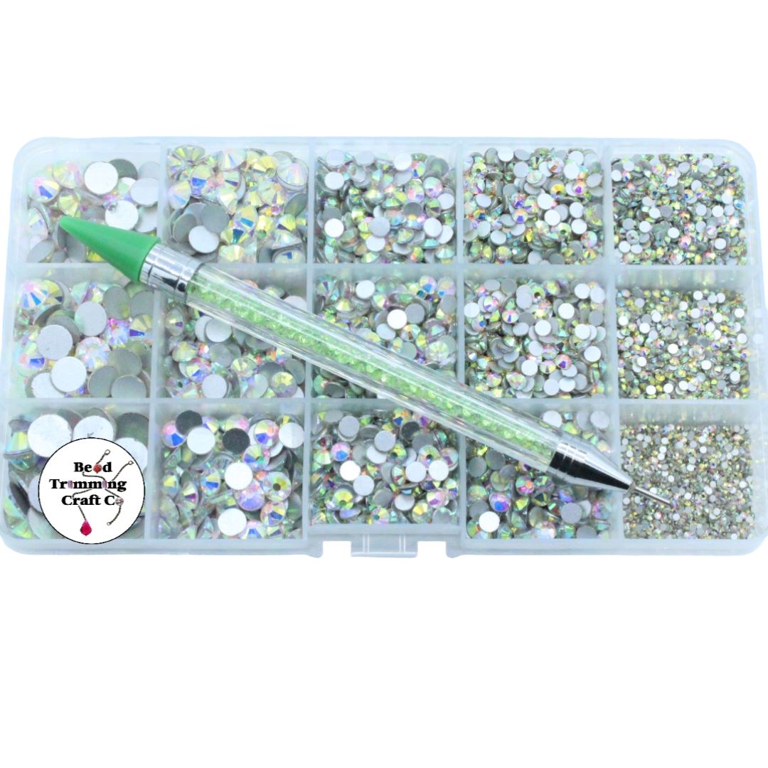 Crystal Glue On Bundle – SS5 to SS50 – AB F – Wax Pen – 7836 pieces.
