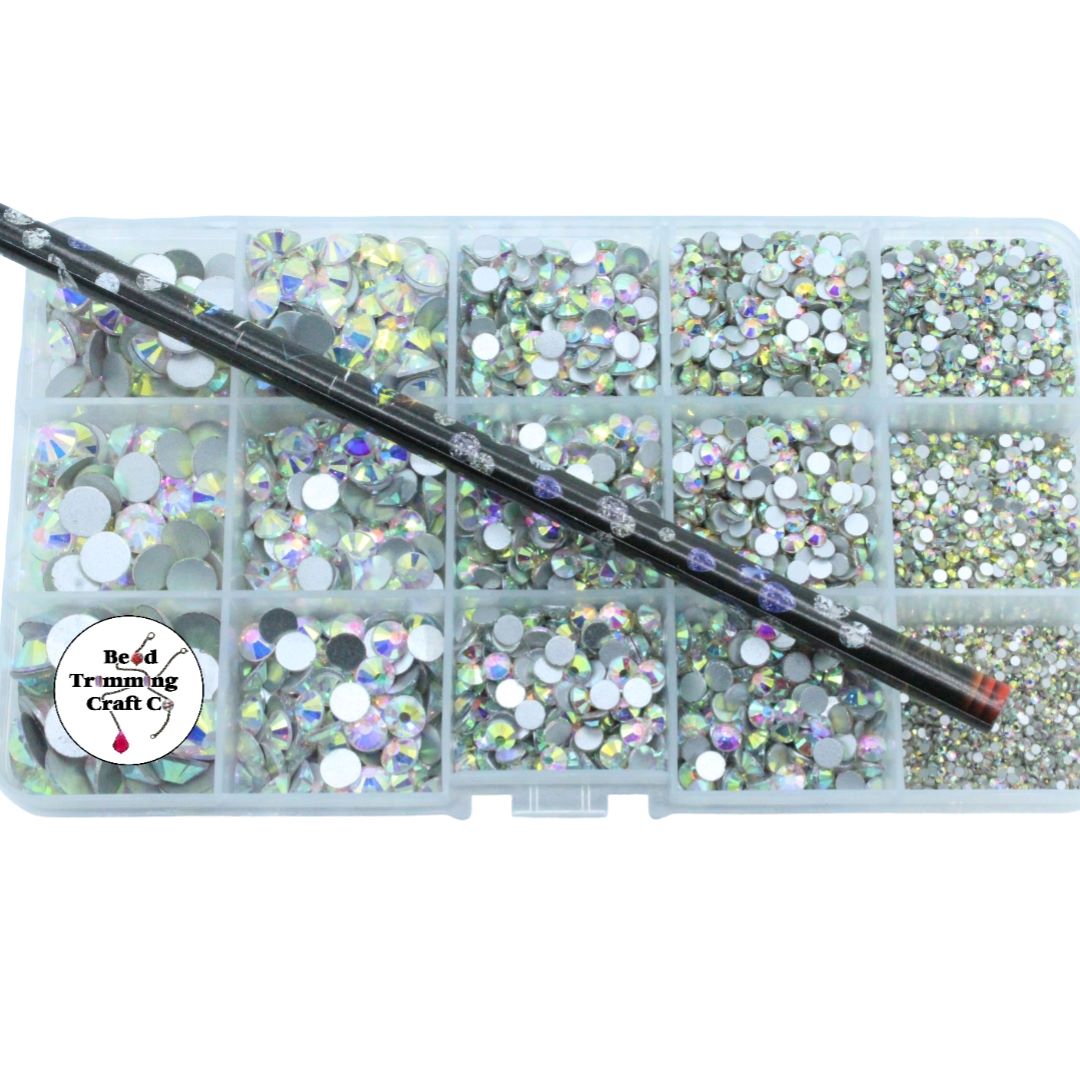 Crystal Glue On Bundle – SS5 to SS50 – AB F – Wax Pencil – 7836 pieces.