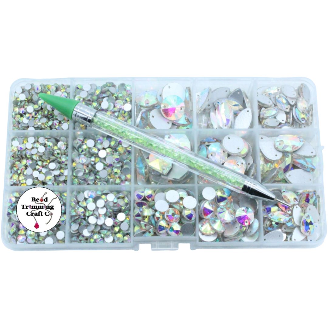 Crystal Glue On / Sew On Bundle – AB F – Wax Pen – 3259 pieces.
