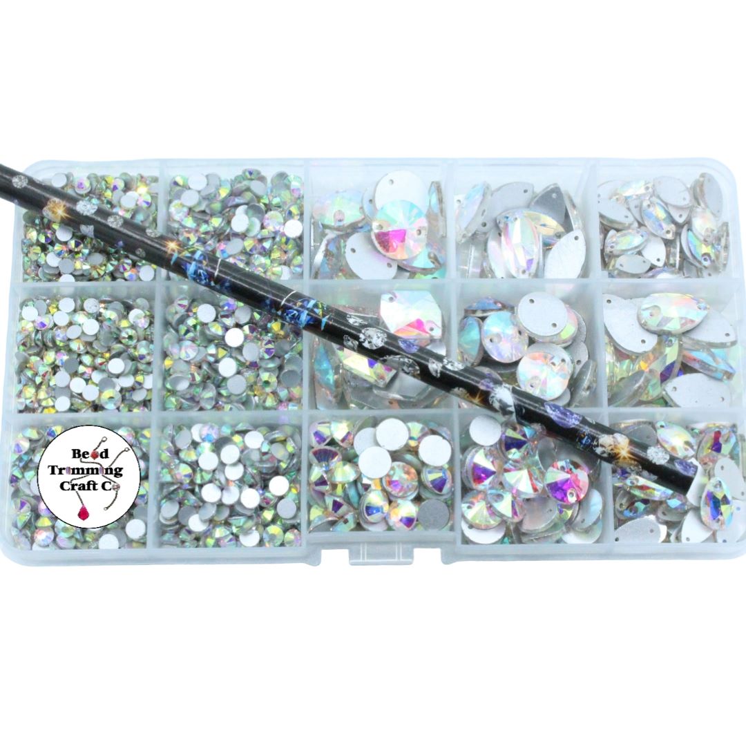 Crystal Glue On / Sew On Bundle – AB F – Wax Pencil – 3259 pieces.