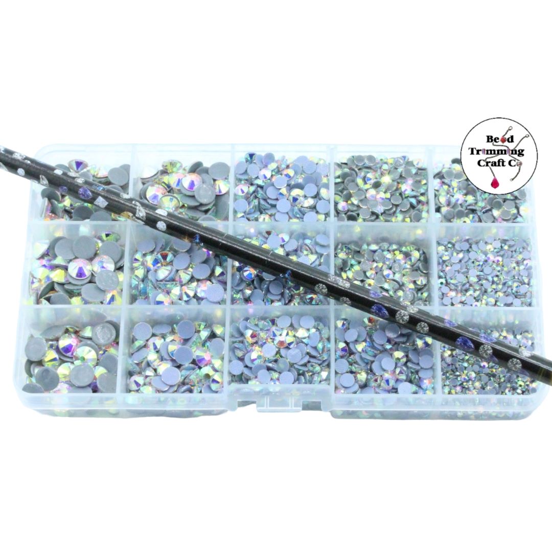 Crystal Heat Fix Bundle – SS8 to SS40 – AB F – Wax Pencil – 6336 pieces.