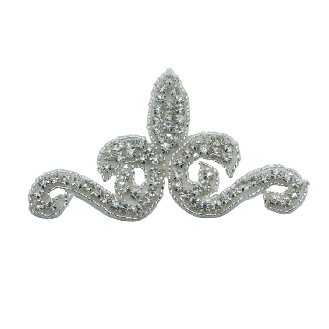 Crystal Motif Braid Fleur De Lys – 11 x 6cm – Silver / Crystal.