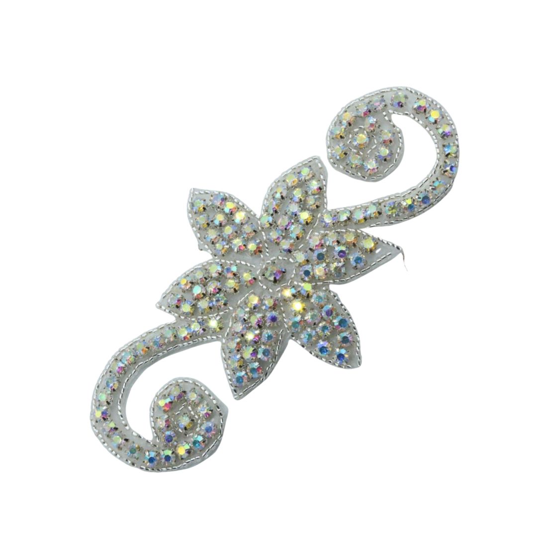 Crystal Motif Braid Floral – 14 x 7cm – Silver / AB.