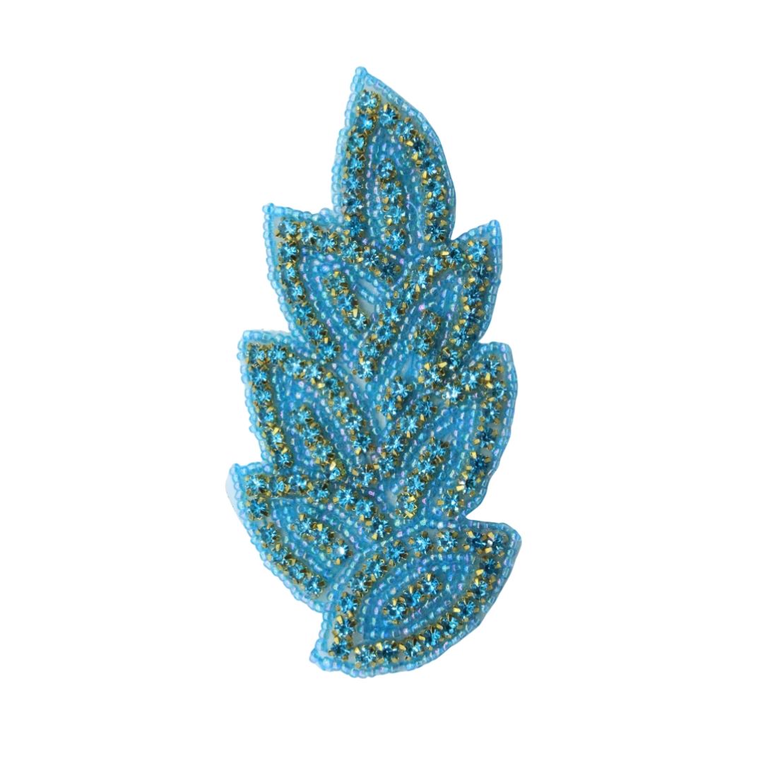 Crystal Motif Braid Leaf – 12 x 6.5cm – Aqua.