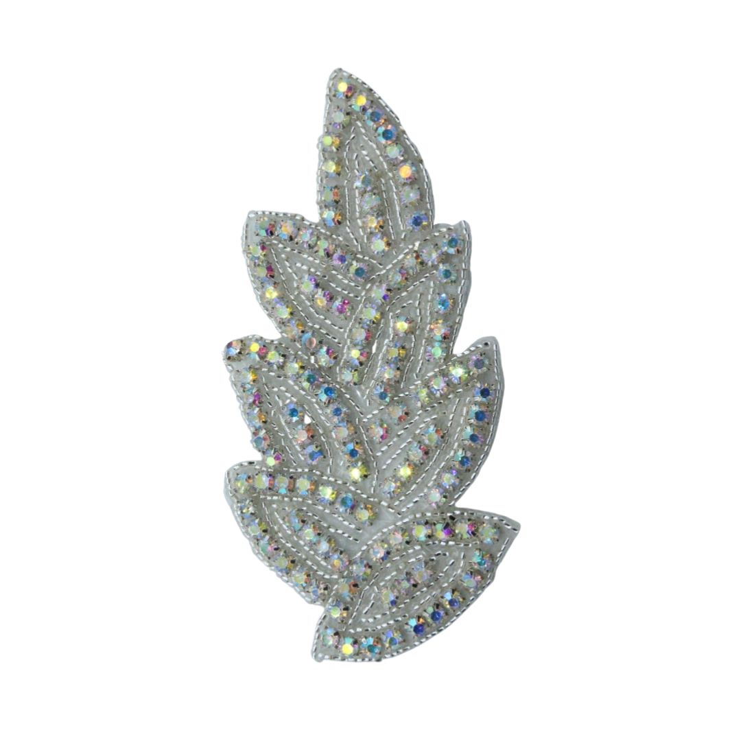 Crystal Motif Braid Leaf – 12 x 6.5cm – Silver / AB.
