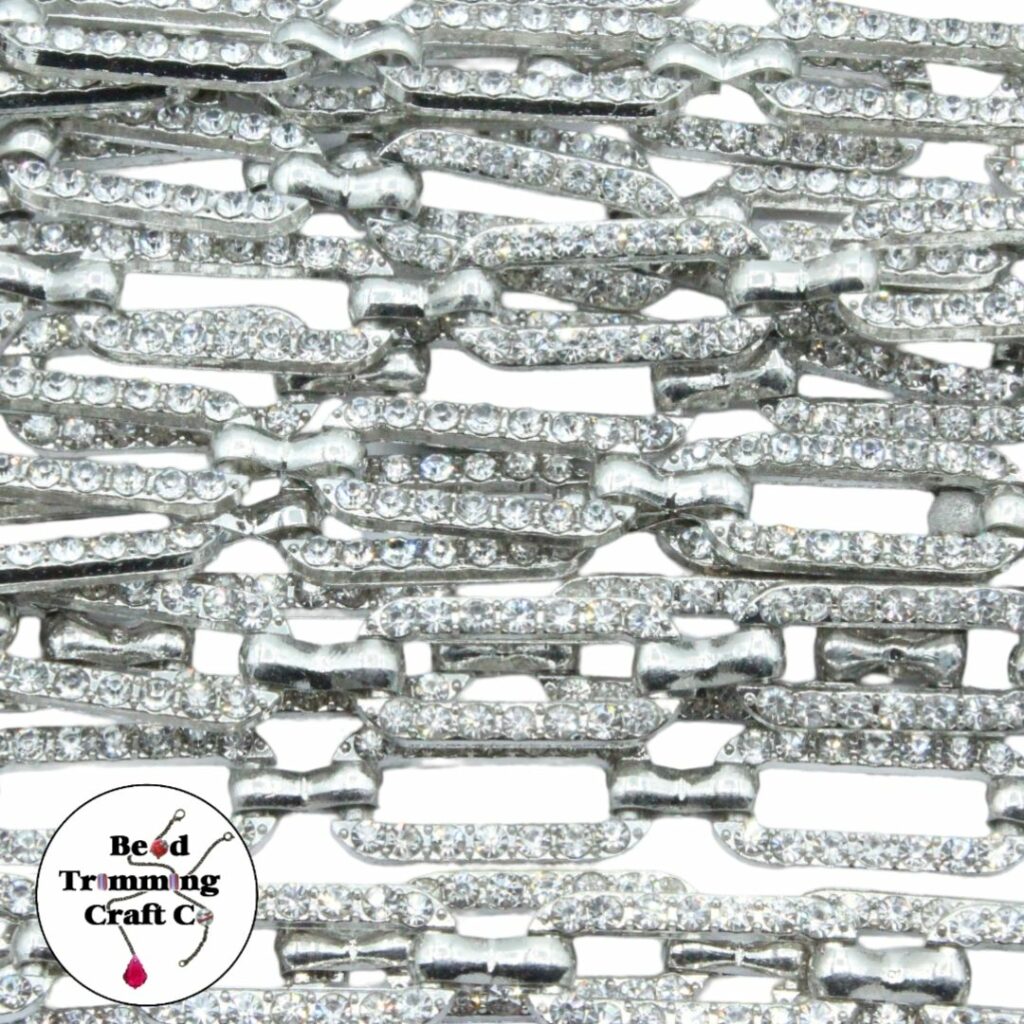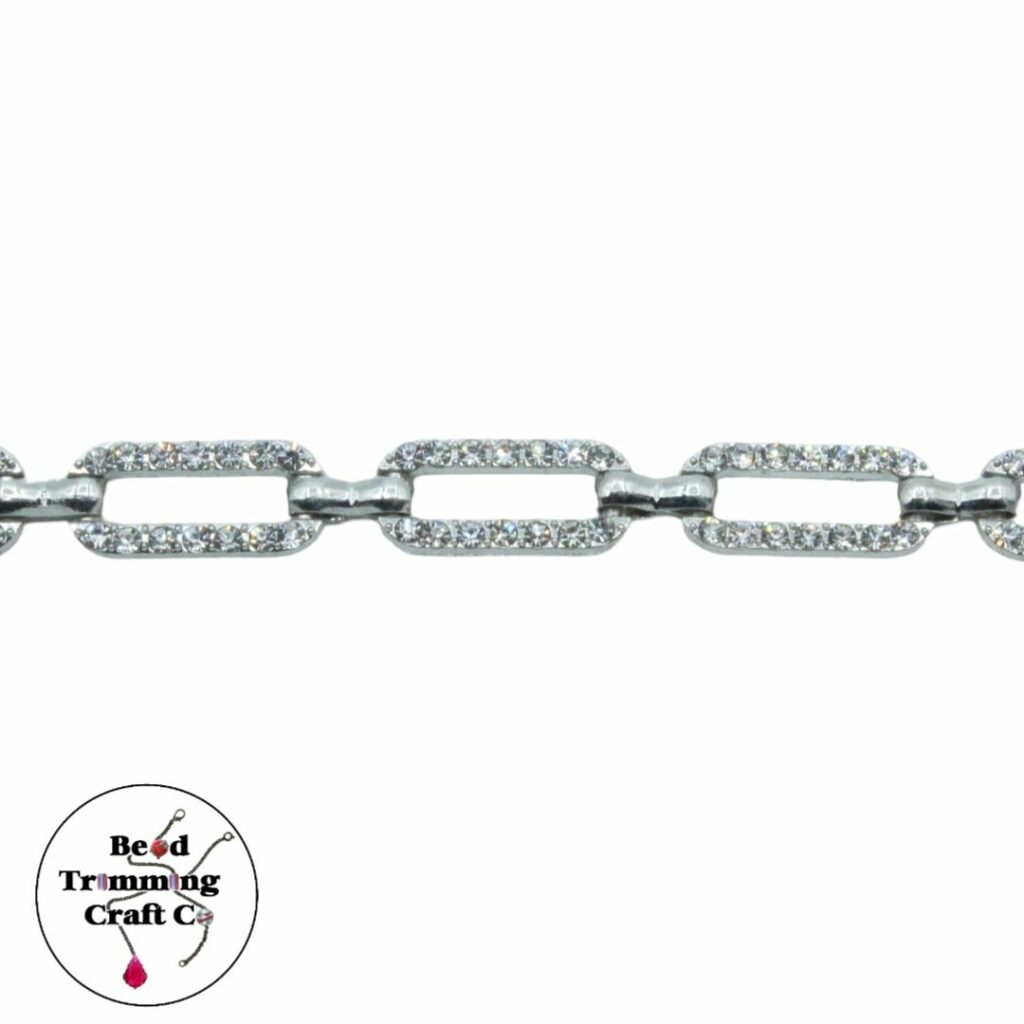 Crystal Oval Trimming – 20mm – Crystal / Ant Silver – Price per centimeter.
