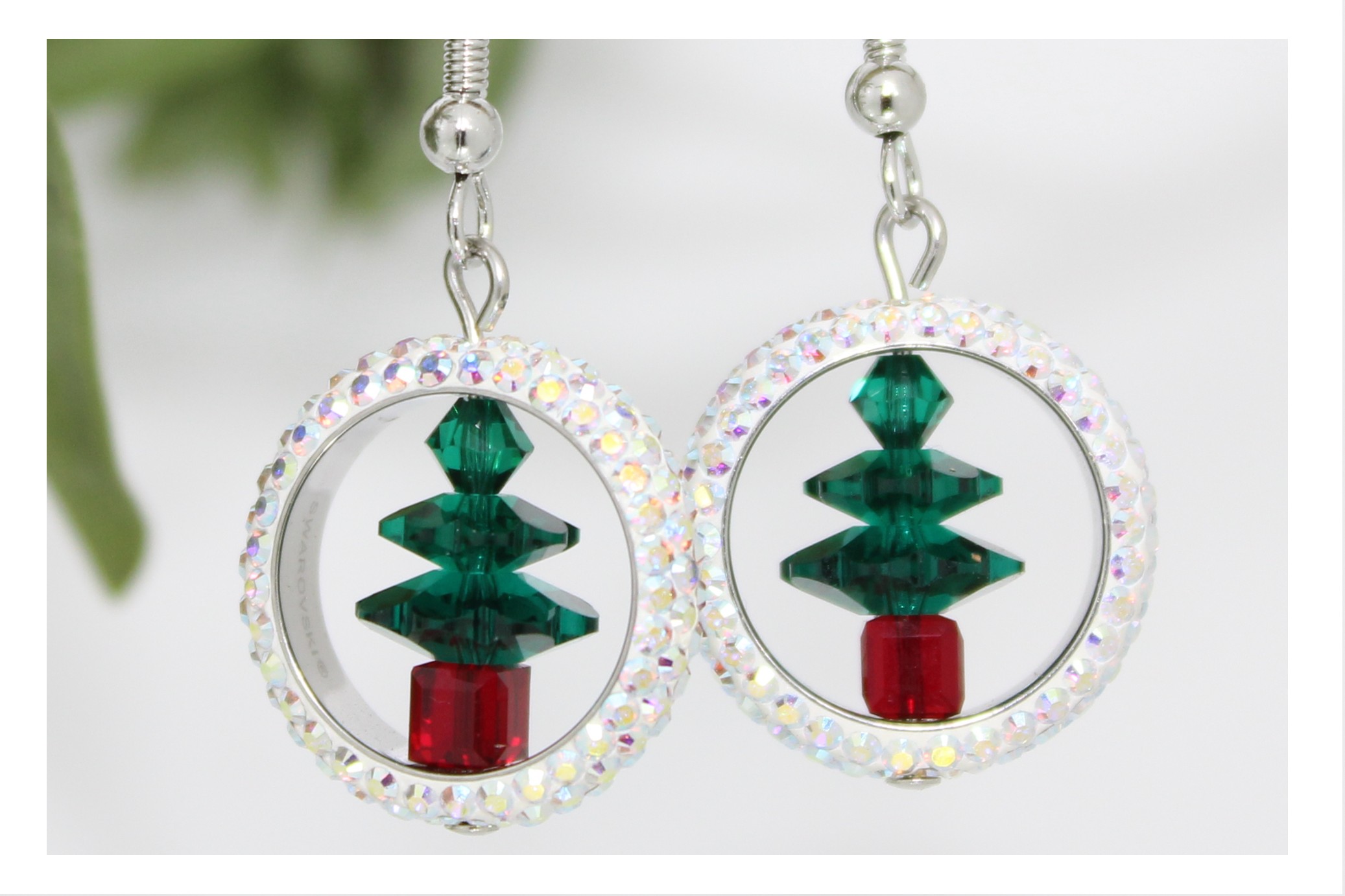 Crystal Pave Ring / Tree Earring – AB / Fern Green. Swarovski Crystal. Using an 14.5mm Crystal Pave Ring. All components are available in assorted colours. Please contact us to mix colours or select colours not displayed.