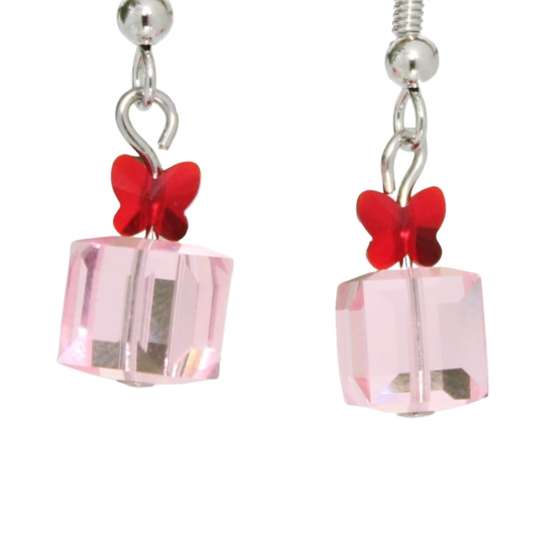 Crystal Present / Bow Earring – Lt Rose. Swarovski Crystal. Using a 8mm Crystal Base. Earrings on Stainless Steel Ear Hooks.