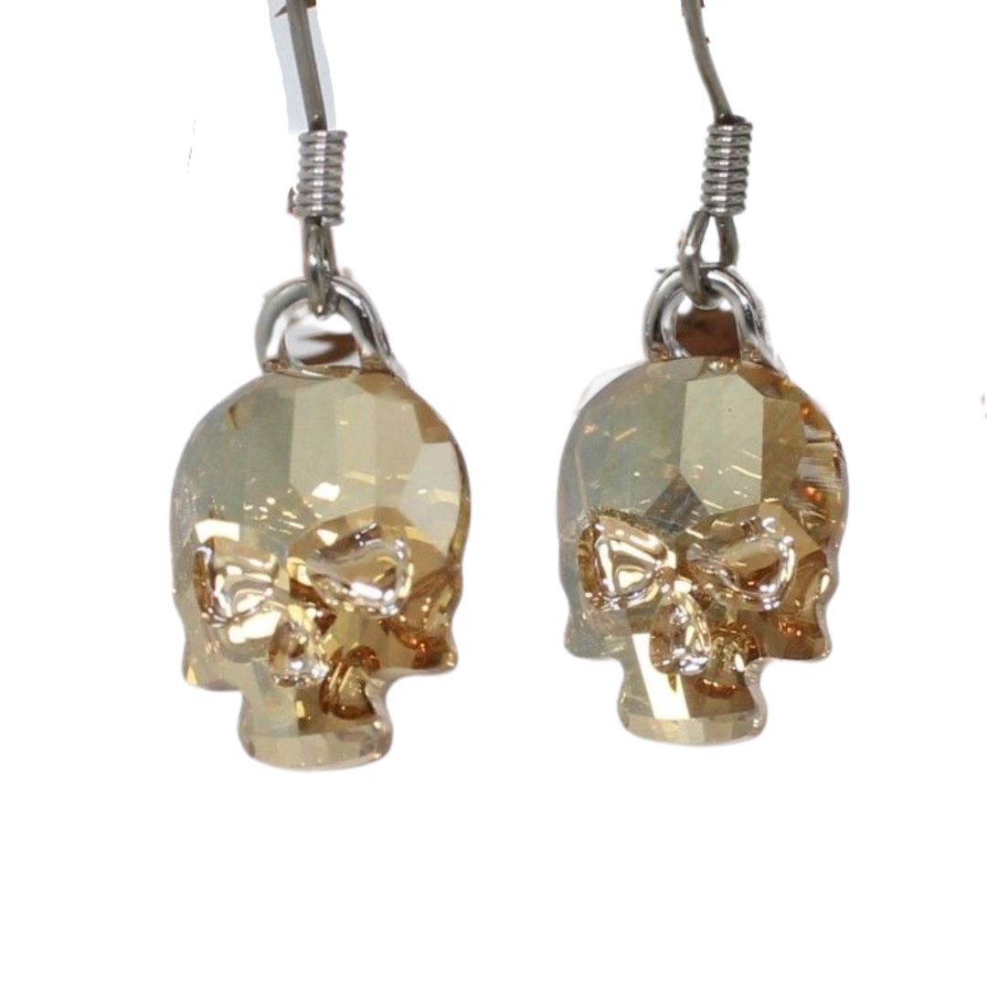 Crystal Skull Earring – 14mm – Golden Shadow. Swarovski Crystal. Using Swarovski’s 14 x 10.5mm Flatback Skull crystal. Earrings on Stainless Steel Ear Hooks. All components are also available to purchase separately.