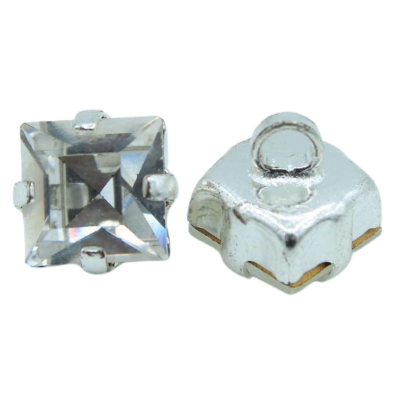 Crystal Square Button – 8mm – Clear. Silver claw. Made in the Czech Republic.