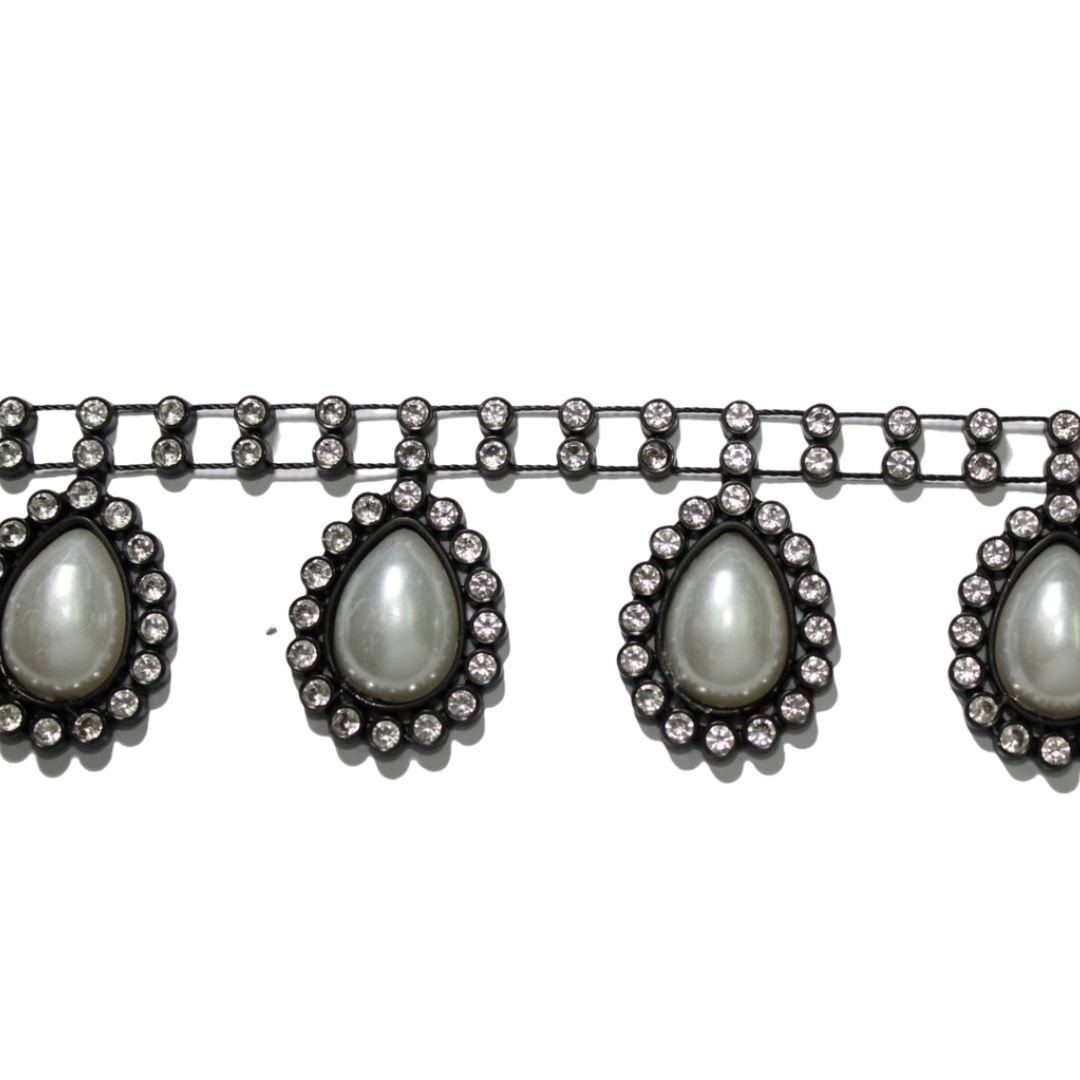 Crystal Trim – Pearl Drop – Black / Crystal – Price per cm. 30mm Width. Black plastic backing with Clear crystals. Pearl Drop. Price is per centimetre.